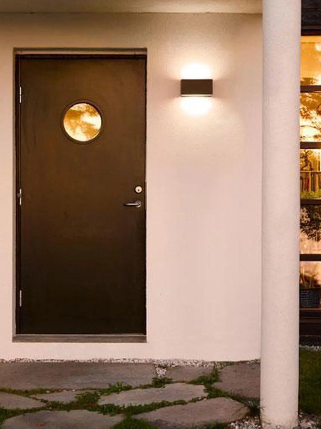 Stilren firkantet vegglampe for utendørsbruk i aluminiumstøp.