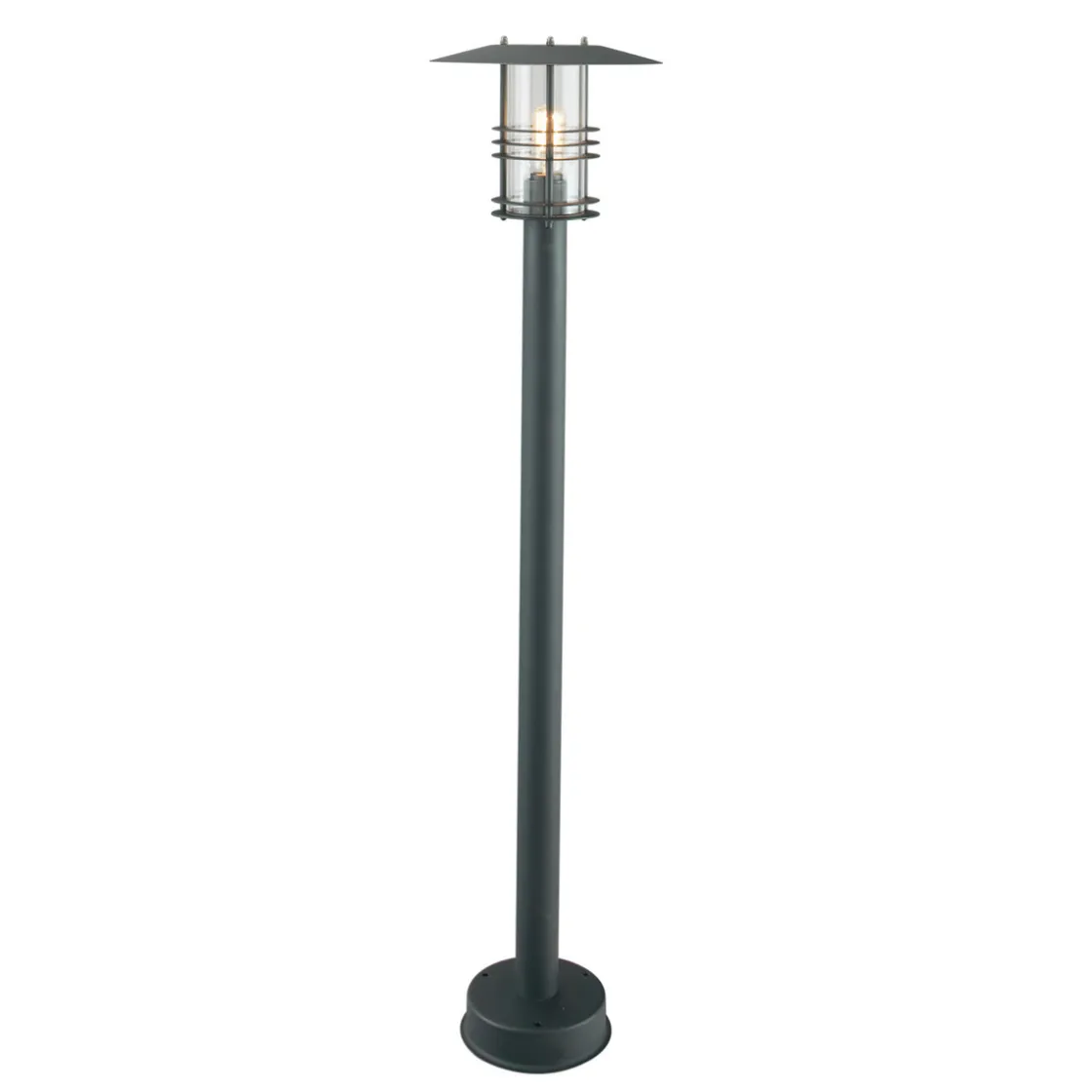 Port og blomsterstolpe i moderne design med glass av klar polykarbonat. Alle Stockholm-modeller kan bestilles med glass i opalhvit farge. Kontakt oss dersom du ønsker dette.