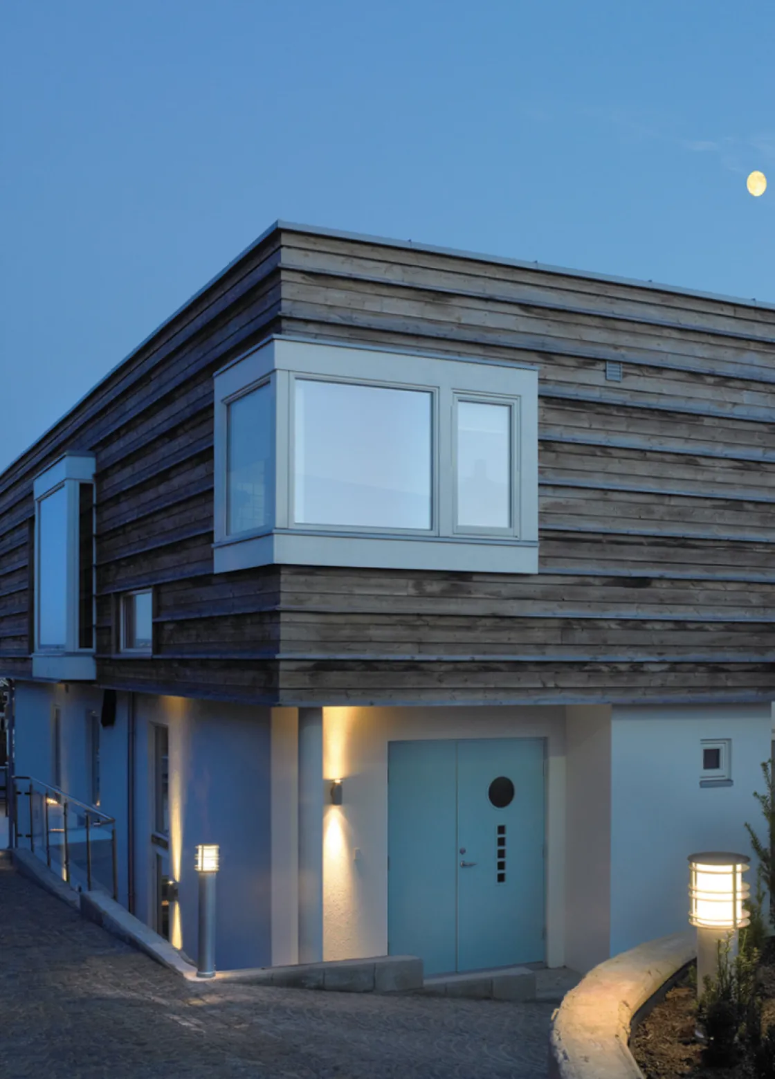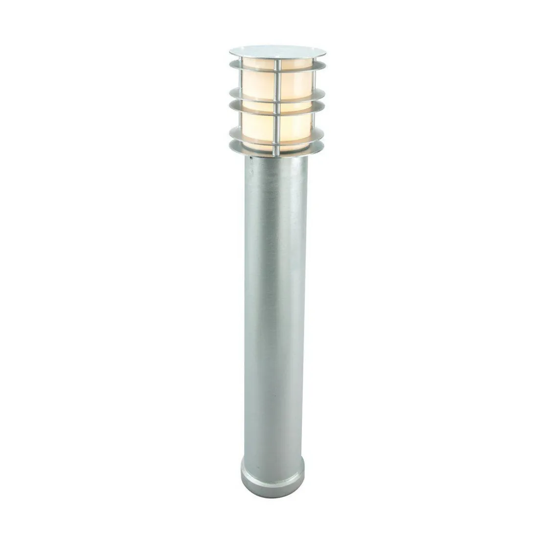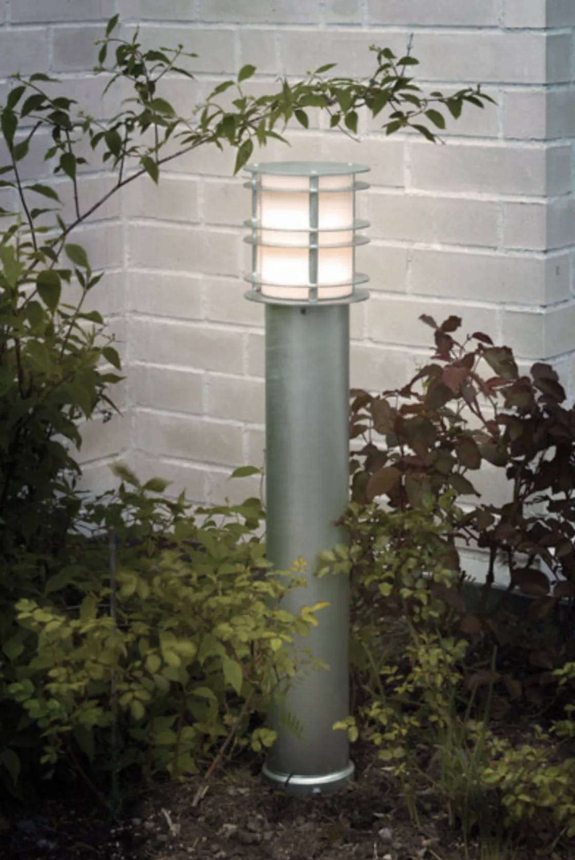 Pullert i moderne design med opalhvitt glass i polykarbonat. Lampen finnes i tre ulike høyder og i fargene galvanisert stål og sort. Lampen er en del av en serie som inneholder vegglamper i to ulike størrelser, portstolper i to ulike størrelser, blomsterstolpe, teleskopstolper med 1 til 3 lyktehoder, samt pullerter i to ulike høyder. Alle utgaver leveres med klar e polykarbonat deksel.