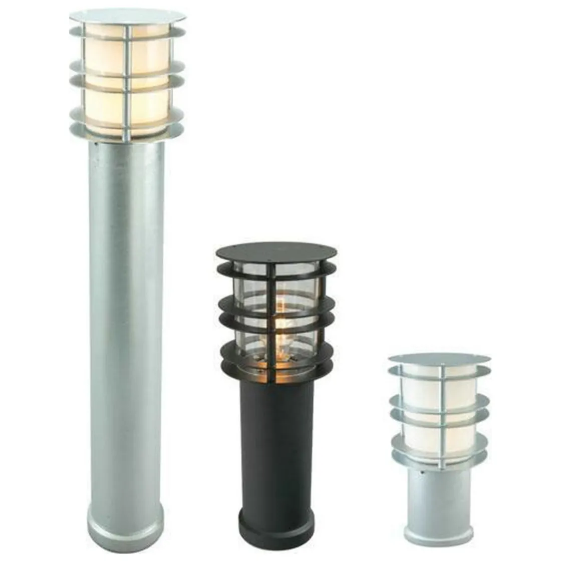 Pullert i moderne design med klart glass i polykarbonat. Lampen finnes i tre ulike høyder og i fargene galvanisert stål og sort. Lampen er en del av en serie som inneholder vegglamper i to ulike størrelser, portstolper i to ulike størrelser, blomsterstolpe, teleskopstolper med 1 til 3 lyktehoder, samt pullerter i to ulike høyder. Alle utgaver leveres med klar e polykarbonat deksel.
