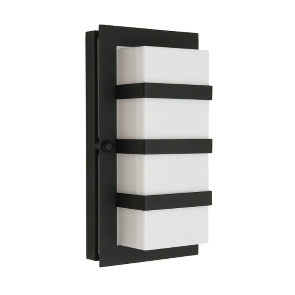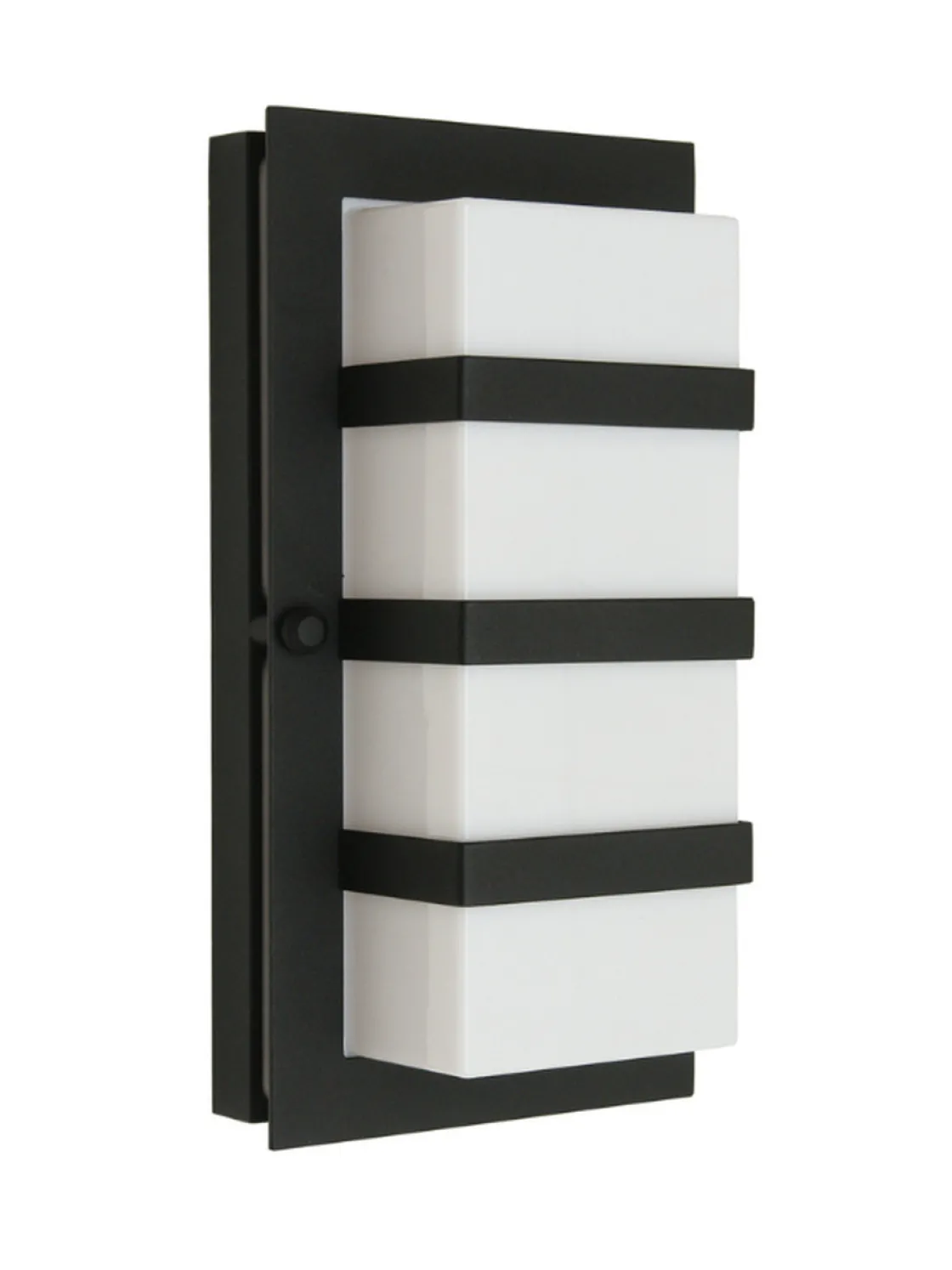 Firkantet vegglampe i moderne design. Bakplate til veggskjoldet er i aluminiumstøp. Frontdeksel i galvanisert eller lakkert stål. Armaturen har opalhvitt polykarbonat glass.