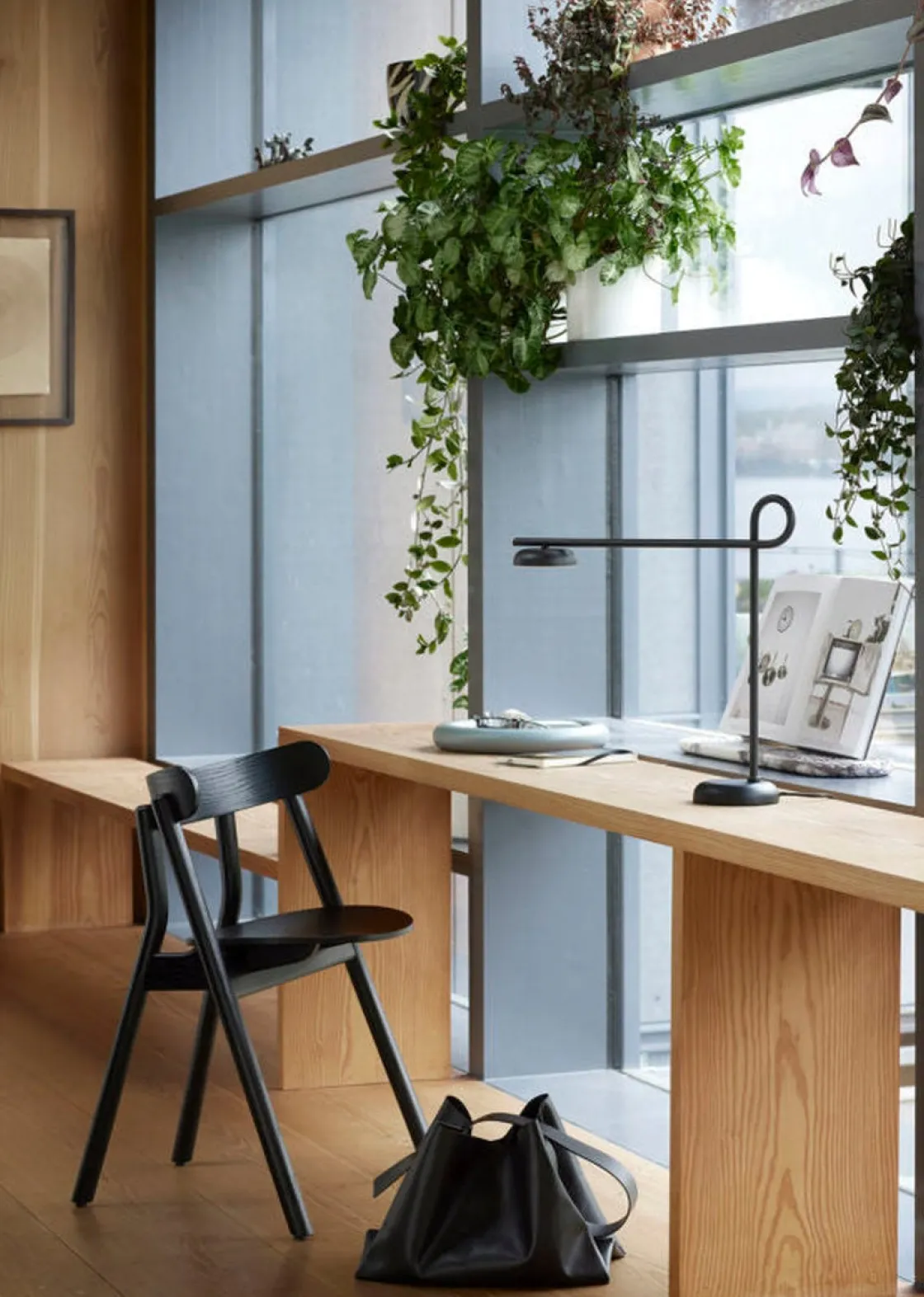 Salto går visuelt fra den vertikale foten til den horisontale armen i en jevn og sømløs bevegelse, og er tilgjengelig som gulvlampe og bordlampe og kommer i en matt svart eller beige finish. Den har også en diskret 3-trinns berøringsdimmer i messing foran på det integrerte LED-lyset, samt en justerbar skjerm og rotasjonsbase som gjør den like praktisk som den er vakker.
