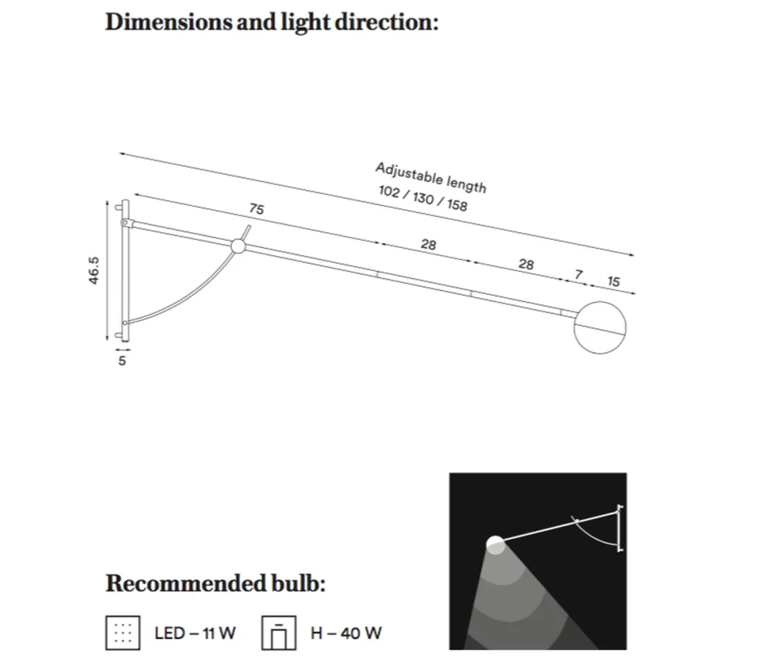 Balancer-vegglampen lyser opp interiøret med en unik justerbar lyskilde. Balancer er designet med en svingbar stålarm som glir loddrett langs den glatte stangen som fester den til veggen. Armen beveger seg oppover og nedover for å justere lysets vinkel, mens den også strekker seg horisontalt, både til venstre og høyre. Skjermen kan dreies for å diffuse lys over tak eller vegg, eller vinkles for å rette lyskilden over pulter, spisebord og arbeidsflater. Armen er konstruert av sammenkoblede