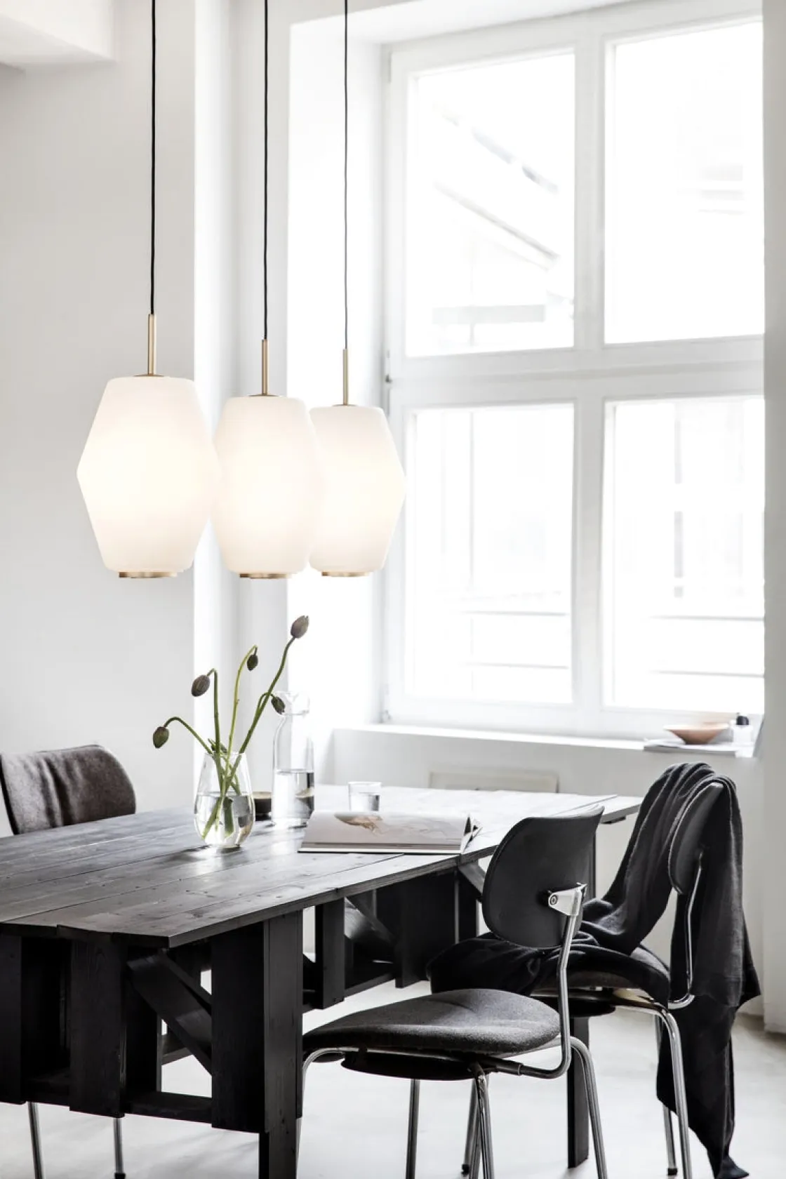 Dahl ble designet av Birger Dahl i 1956, opprinnelig for stortinget i Oslo. Northern Lighting ønsker å markere 100 års jubileumet for fødselsdagen til Birger Dahl, nettopp ved å relansere denne flotte lampen. Glasset er munnblåst, og behandlet slik at det får en matt finish. Her kan man ha mye lys i uten å bli blendet. Lyset blir mykt grunnet det matte glasset. Fin å bruke over spisebord, på kjøkkenet, over salongbordet, i et hjørne eller under et høyt tak med selskap av flere Dahl. En stilren lampe som samtidig er funksjonell.