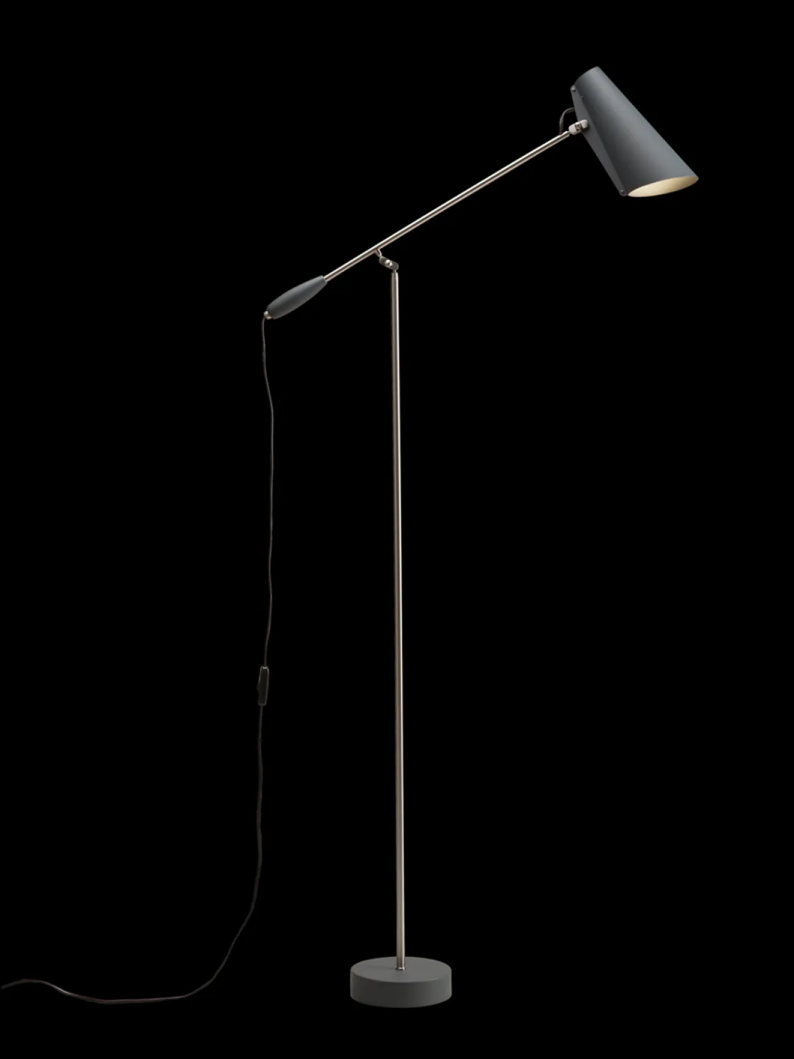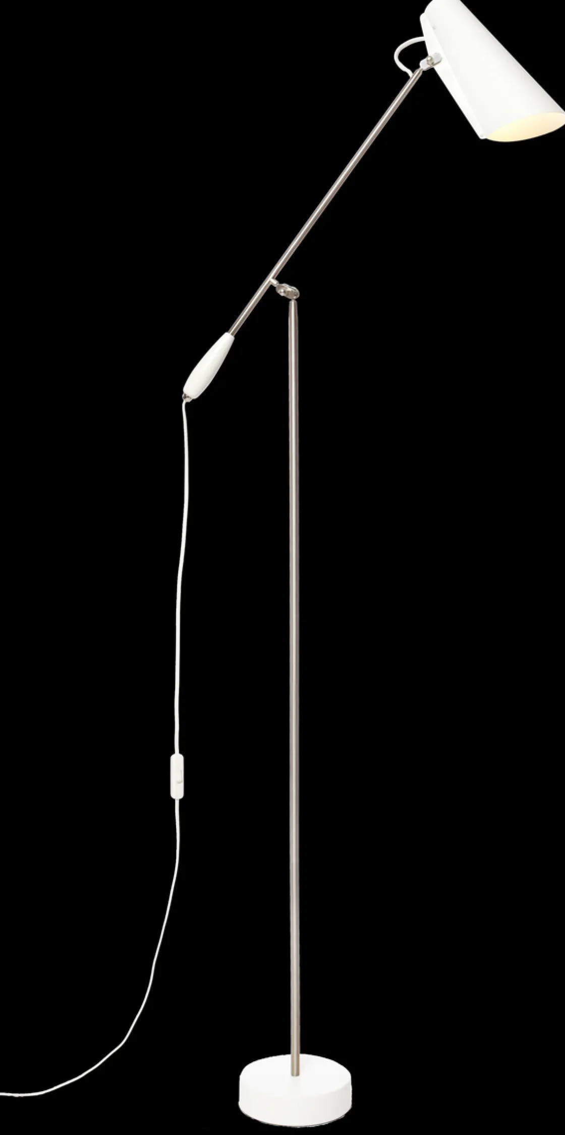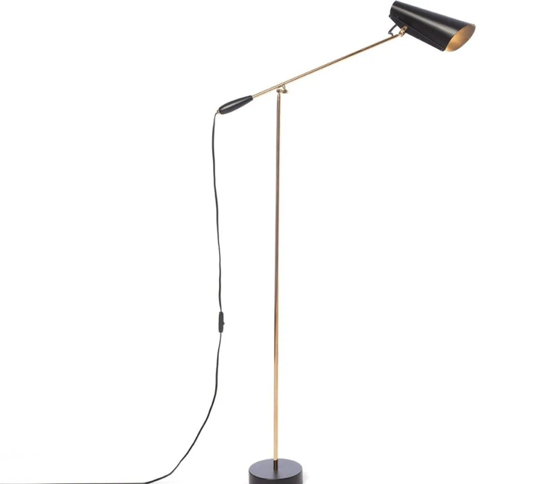 Birdy gulvlampe ble designet av Birger Dahl i 1952. Like moderne og funksjonell tross sin høye alder. Denne lampen er meget funksjonell, da både armen og hodet er bevegelige slik at en kan styre lyset dit en vil. Her får en direkte lys, uten blending. Egner seg derfor som både leselampe og arbeidslampe. Anbefaler Led spot pære i denne.