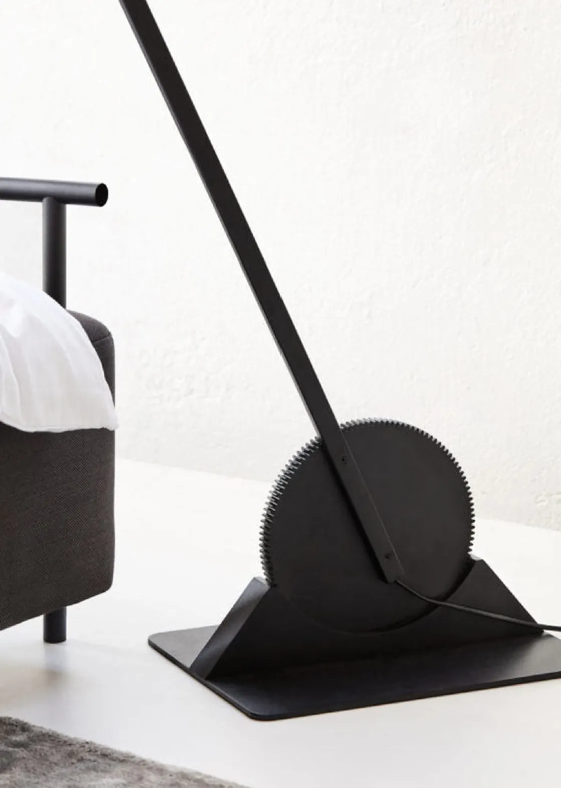 Gear gulvlampe er en stor og moderne lampe i industriell stil. Utførelse i matt sort stål og med bevegelige deler. Du kan endre lampens posisjon gjennom å justere den via en spak. Lampens posisjon låser seg etter hver justering og lyset kan justeres etter hvor mye lys du ønsker. Gear finnes i flere varianter.