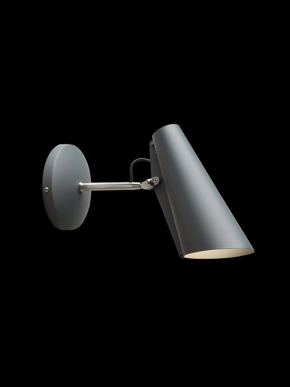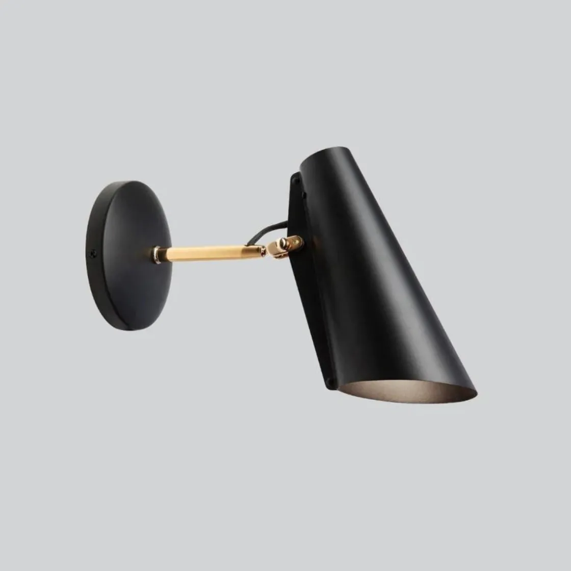 Birdy vegglampe med kort arm ble designet av Birger Dahl i 1952. Like moderne og funksjonell i dag tross sin høye alder. Denne lampen er meget funksjonell da hodet er bevegelig slik at en kan styre lyset dit en vil. Her får en direkte lys, uten blending. Egner seg derfor som leselampe og arbeidslampe. Anbefaler Led spot pære i denne.