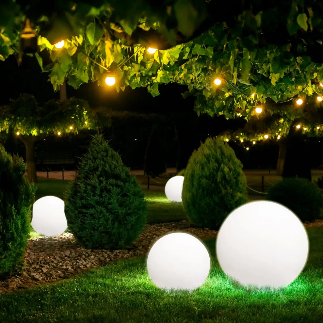 Nydelig dekorasjonsball egnet for bruk utendørs. Dekorasjonsballen kan settes direkte på terrassen eller festes i jorden i hagen, med det medfølgende jordspydet.