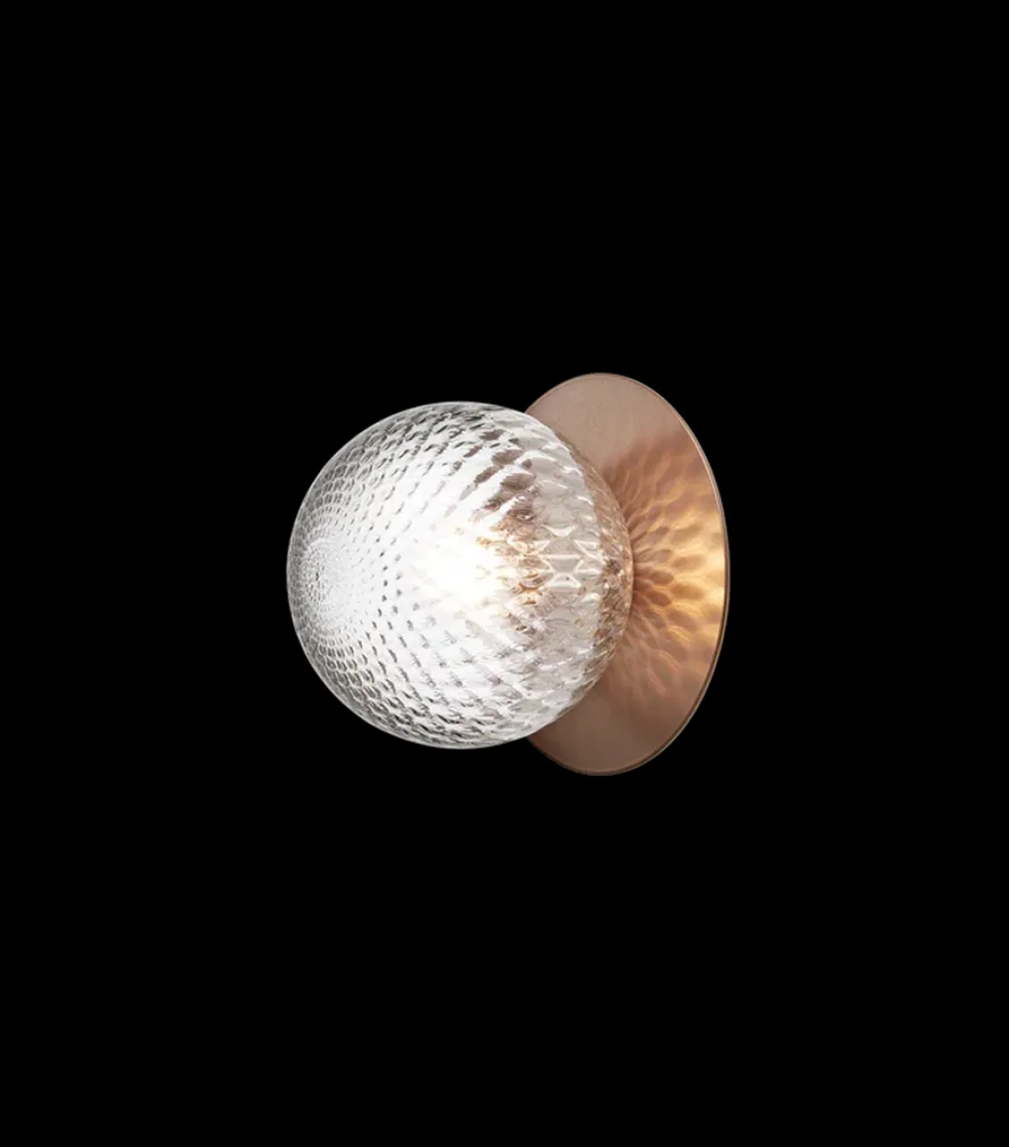 Liila 1 er en enkel lampe som ser vakker ut på veggen eller i taket. Den er enkel i sin form, og består av en tynn rund metallplate og en unik, munnblåst glasskuppel. Liila 1 passer til mindre rom, bad og til entréen.