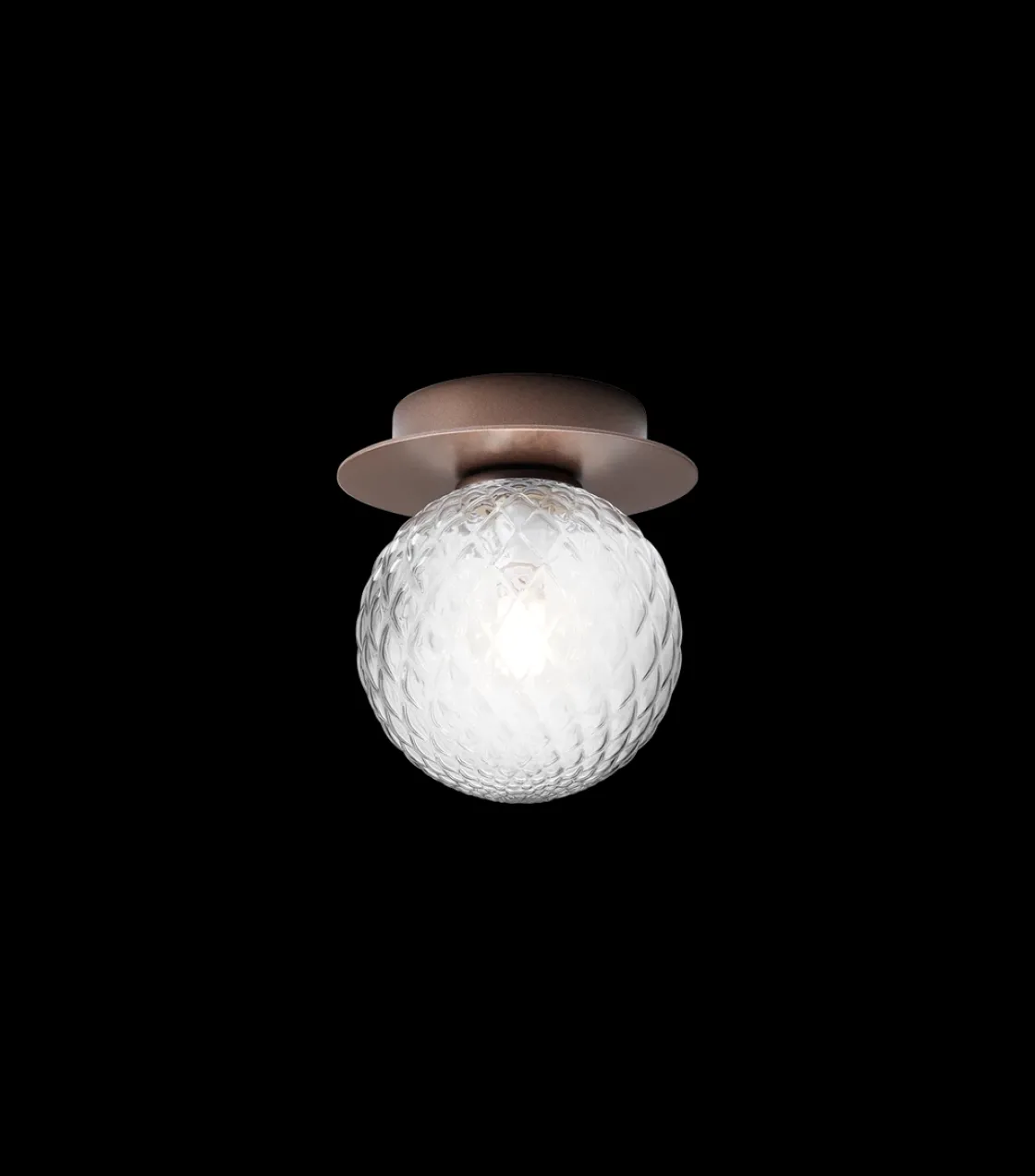 Liila 1 er en enkel lampe som ser vakker ut på veggen eller i taket. Den er enkel i sin form, og består av en tynn rund metallplate og en unik, munnblåst glasskuppel. Liila 1 passer til mindre rom, bad og til entréen.