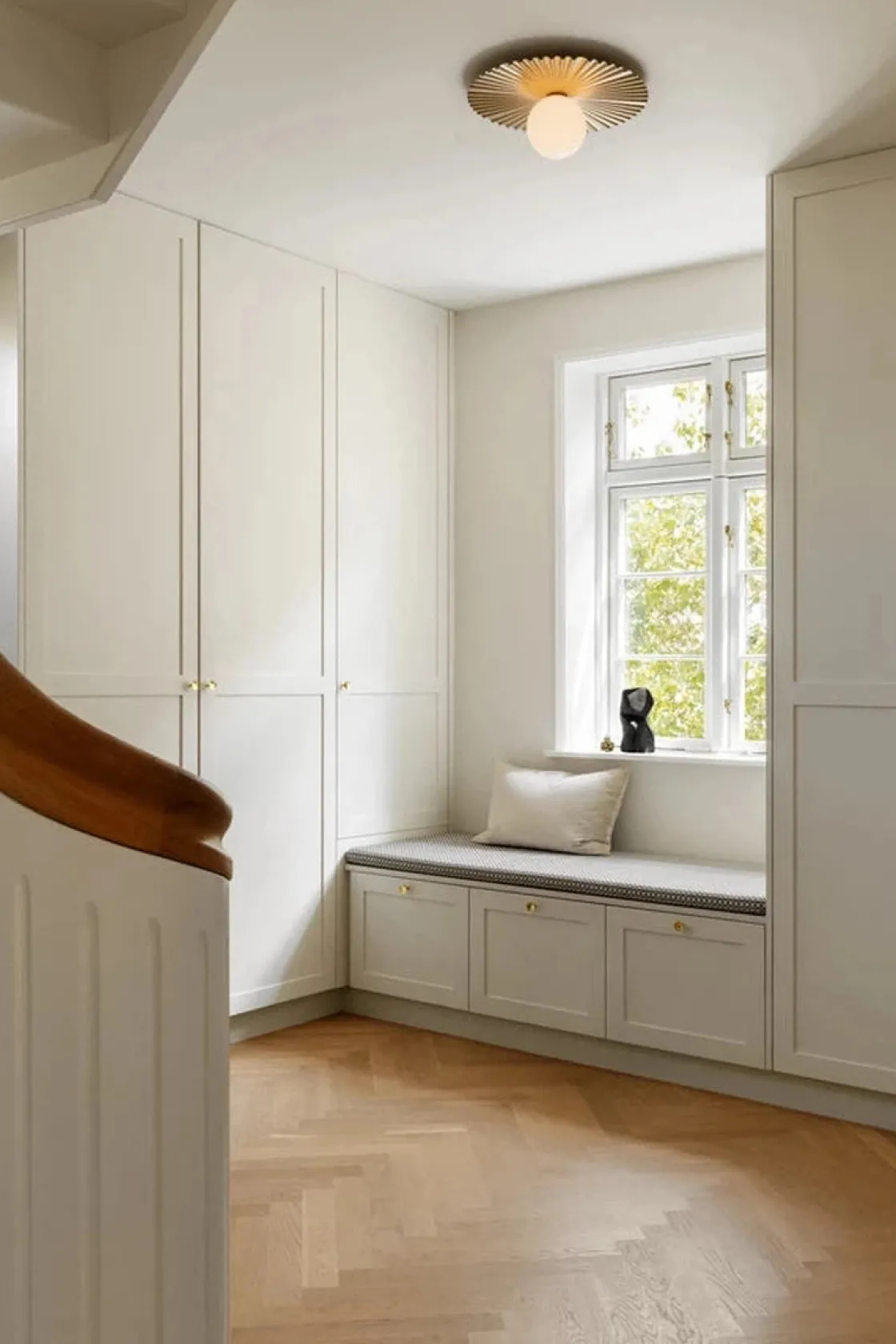 Liila Muuse Medium er et lekent tillegg til Liila-seriens flyteegenskaper. Vegg- og taklampen består av en stor riflet bakplate i gyllent metall og en mindre opalhvit glasskule. Kombinasjonen av den bølgete teksturen og den rene, organiske formen gir dybde og dimensjon, og fremhever de morsomme funksjonene. Liila Muuse Medium-lampen er ideell som en semi-flush-montert taklampe i en foaje, og gir et interessant uttrykk til rommet.