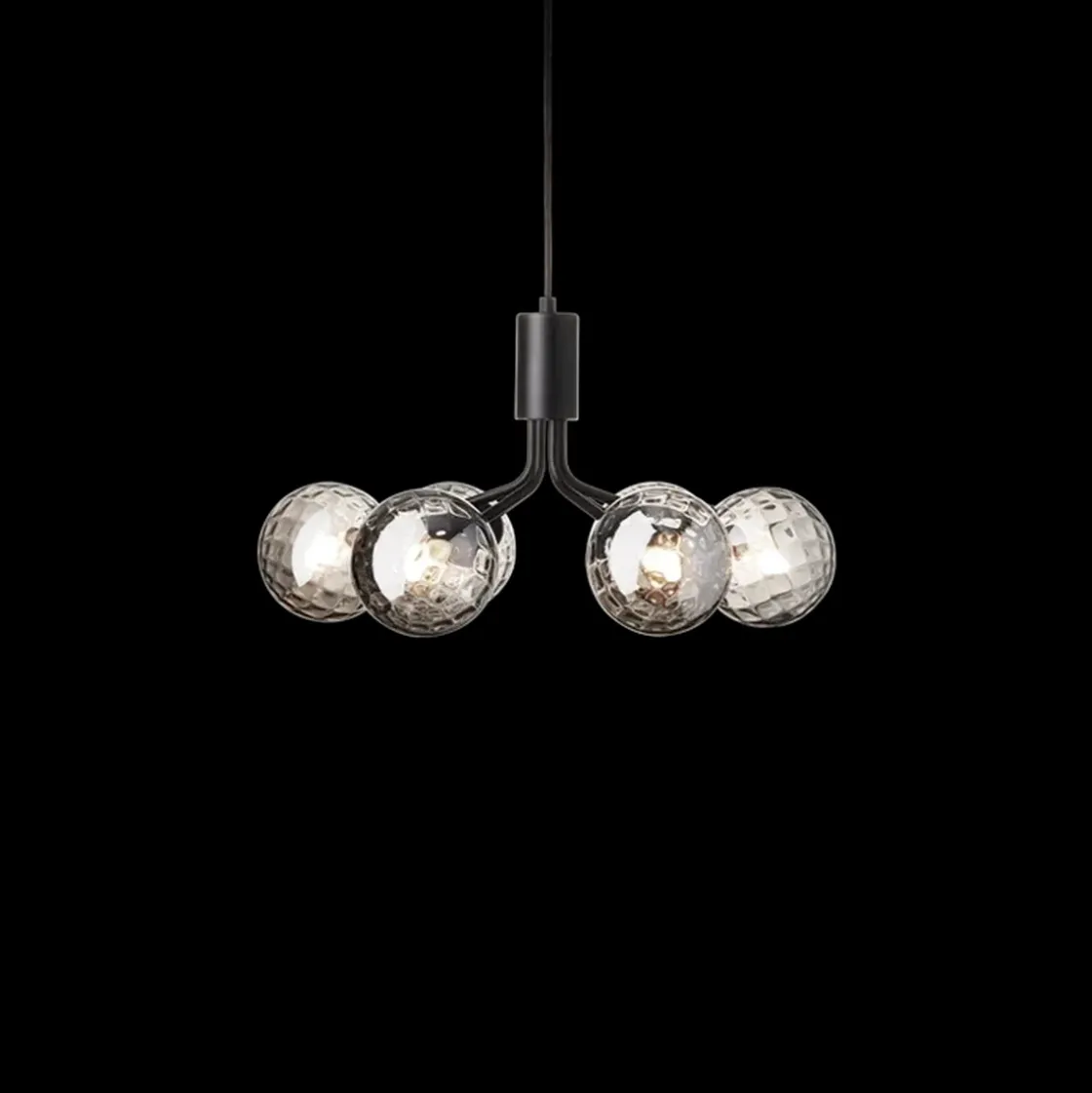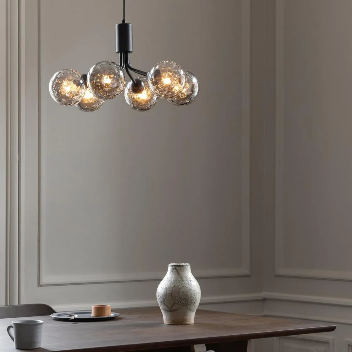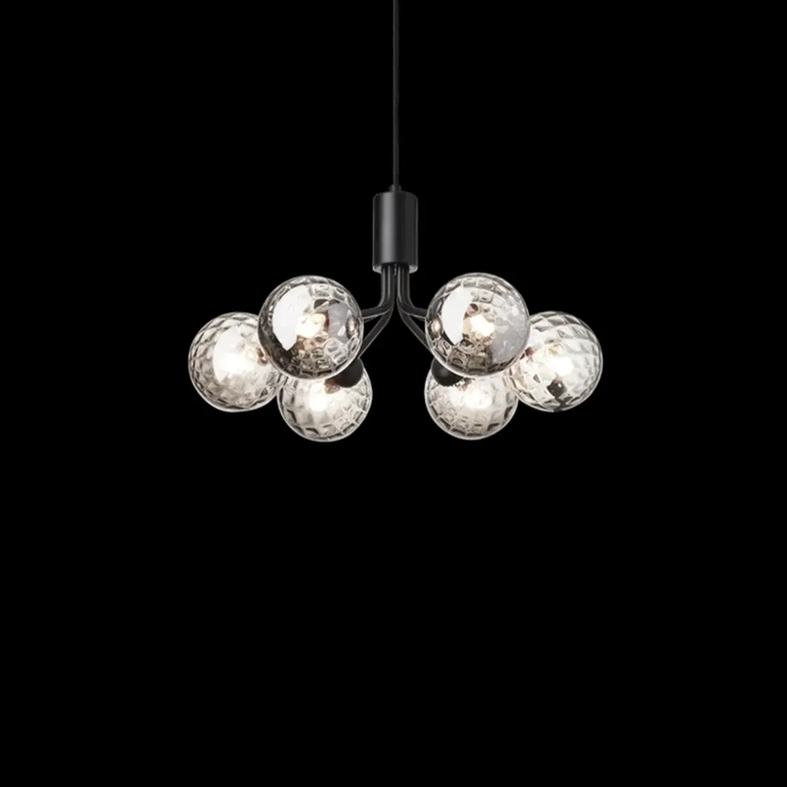 Med inspirasjon fra blomster, bretter Apiales 6 ut de sorte satengstilkene til optic smoke glasskuler, og tilbyr et mykt og behagelig uttrykk til rom med begrenset plass.