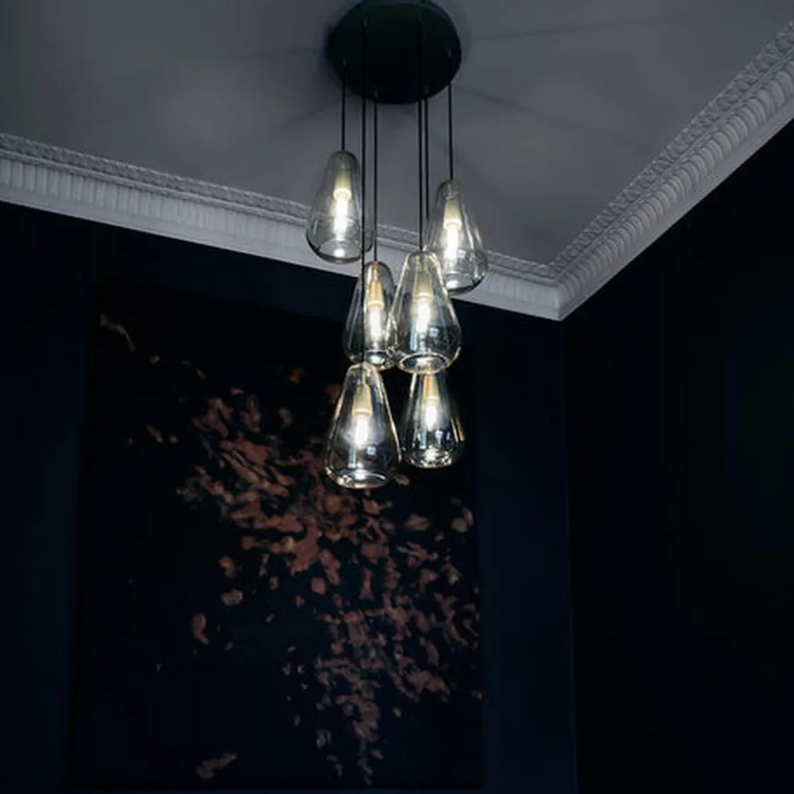 Anoli 6 Taklampe er laget av materialer av høyeste kvalitet, av dyktige håndverkere. Uttrykket er enkelt og består av munnblåste dråpeformede glassvedheng. Ta med det unike nordiske lyset innendørs med Anoli 3 taklampe.