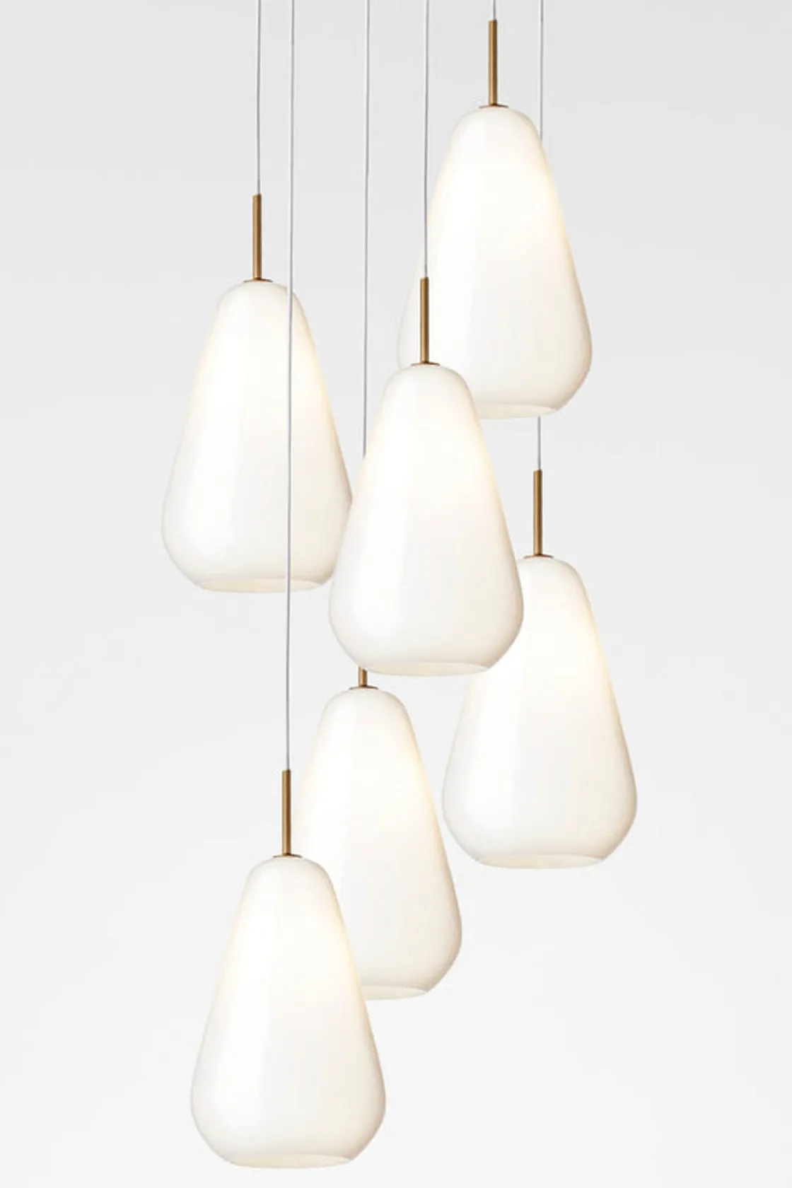 Anoli 6 Taklampe er laget av materialer av høyeste kvalitet, av dyktige håndverkere. Uttrykket er enkelt og består av munnblåste dråpeformede glassvedheng. Ta med det unike nordiske lyset innendørs med Anoli 3 taklampe.
