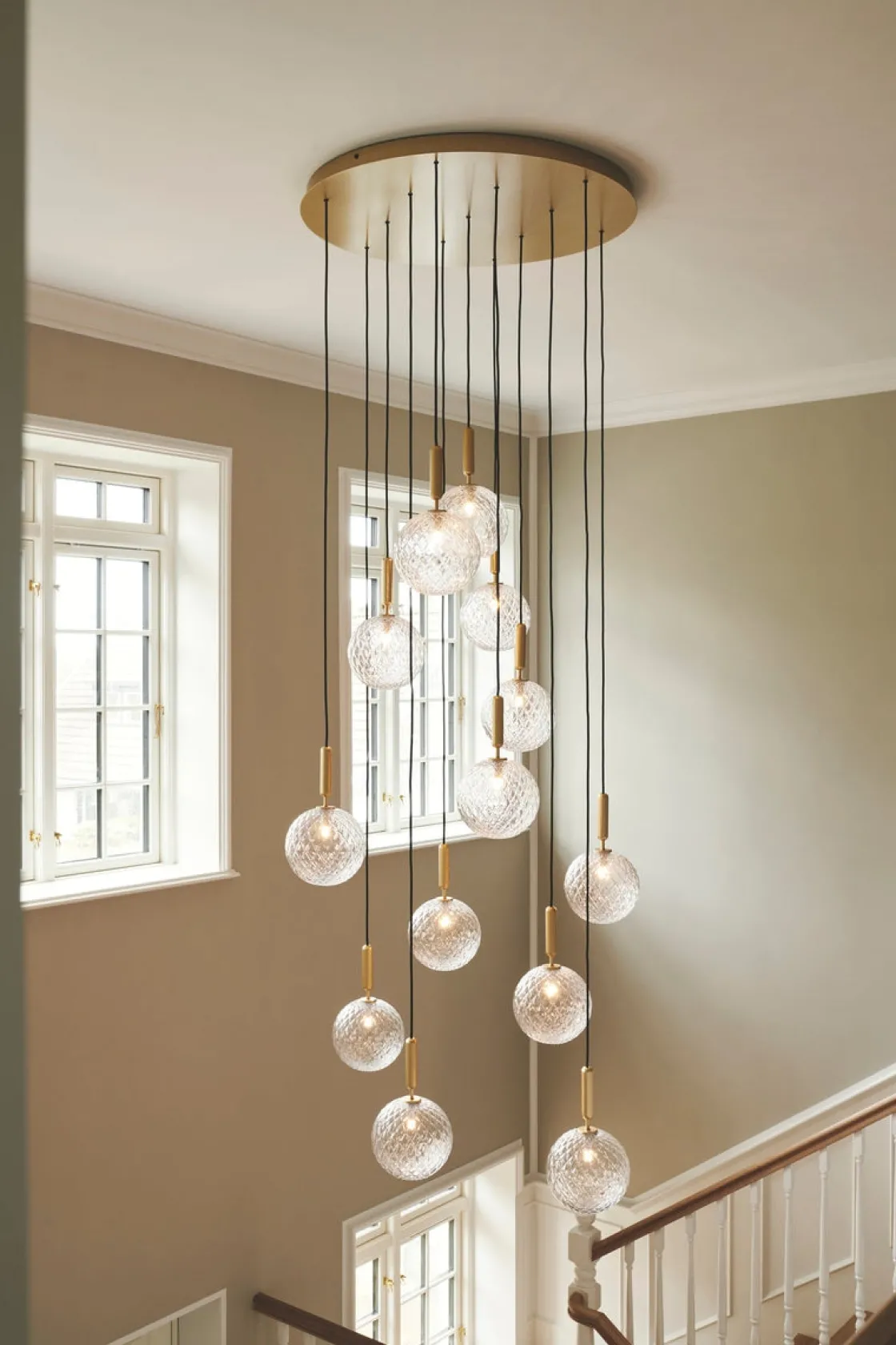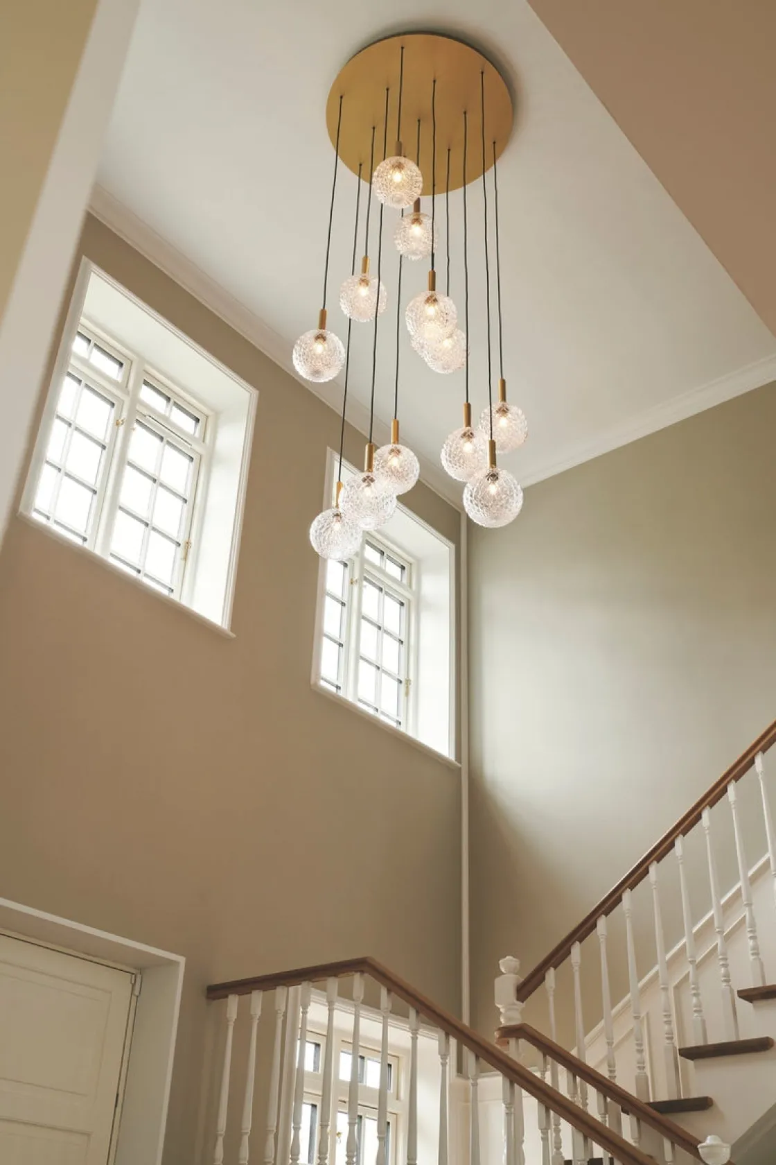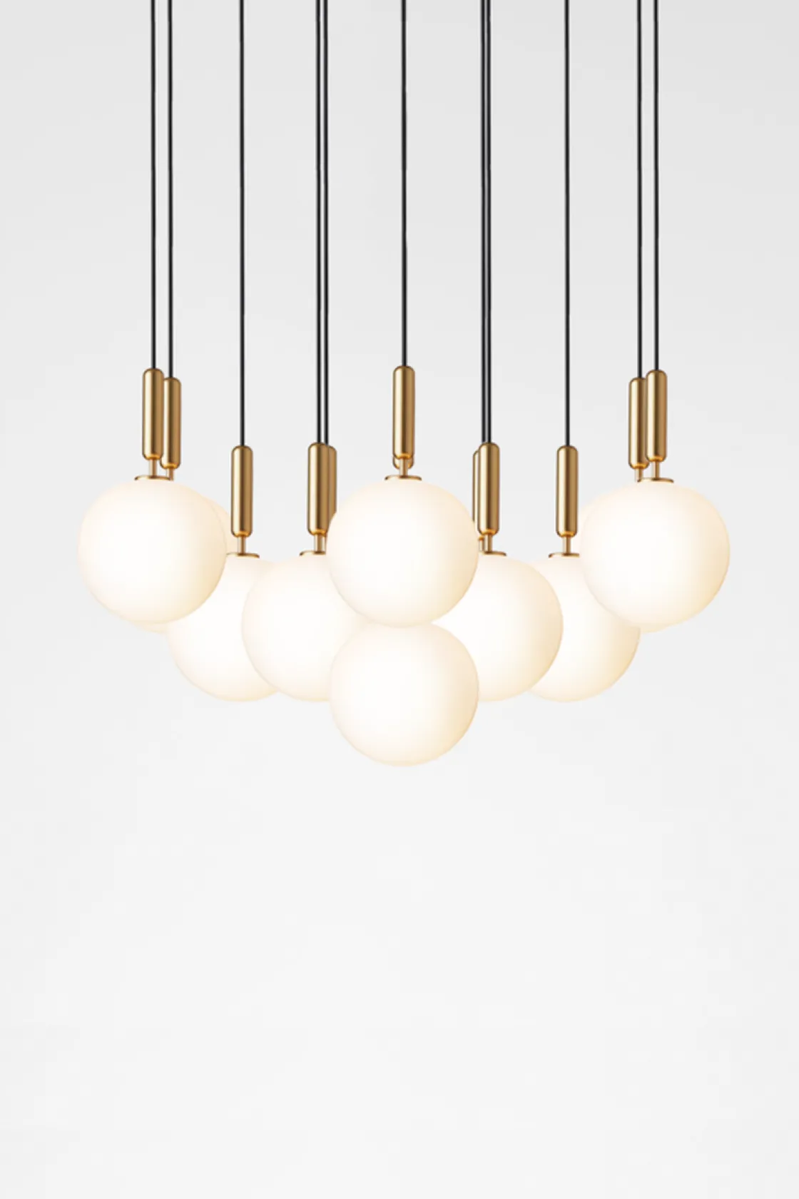 Miira 13 Large Brass takpendel har et enkelt og tidløst design som omfavner den nordiske elegansen og funksjonen. Det munnblåste glasset og stilige bearbeidede metallet gir designet balanse og dybde. Mykt nordisk lys sprer en unik atmosfære til rommet lampen befinner seg i. Takpendelen kommer med Opal eller Optic glass.