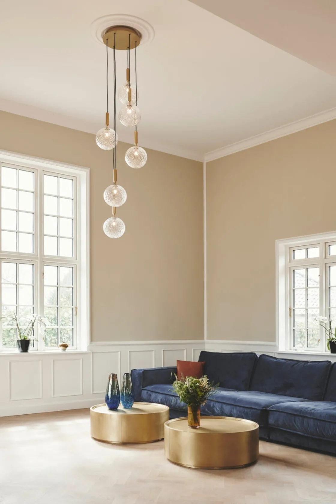 Miira 6 Large Brass takpendel har et enkelt og tidløst design som omfavner den nordiske elegansen og funksjonen. Det munnblåste glasset og stilige bearbeidede metallet gir designet balanse og dybde. Mykt nordisk lys sprer en unik atmosfære til rommet lampen befinner seg i.