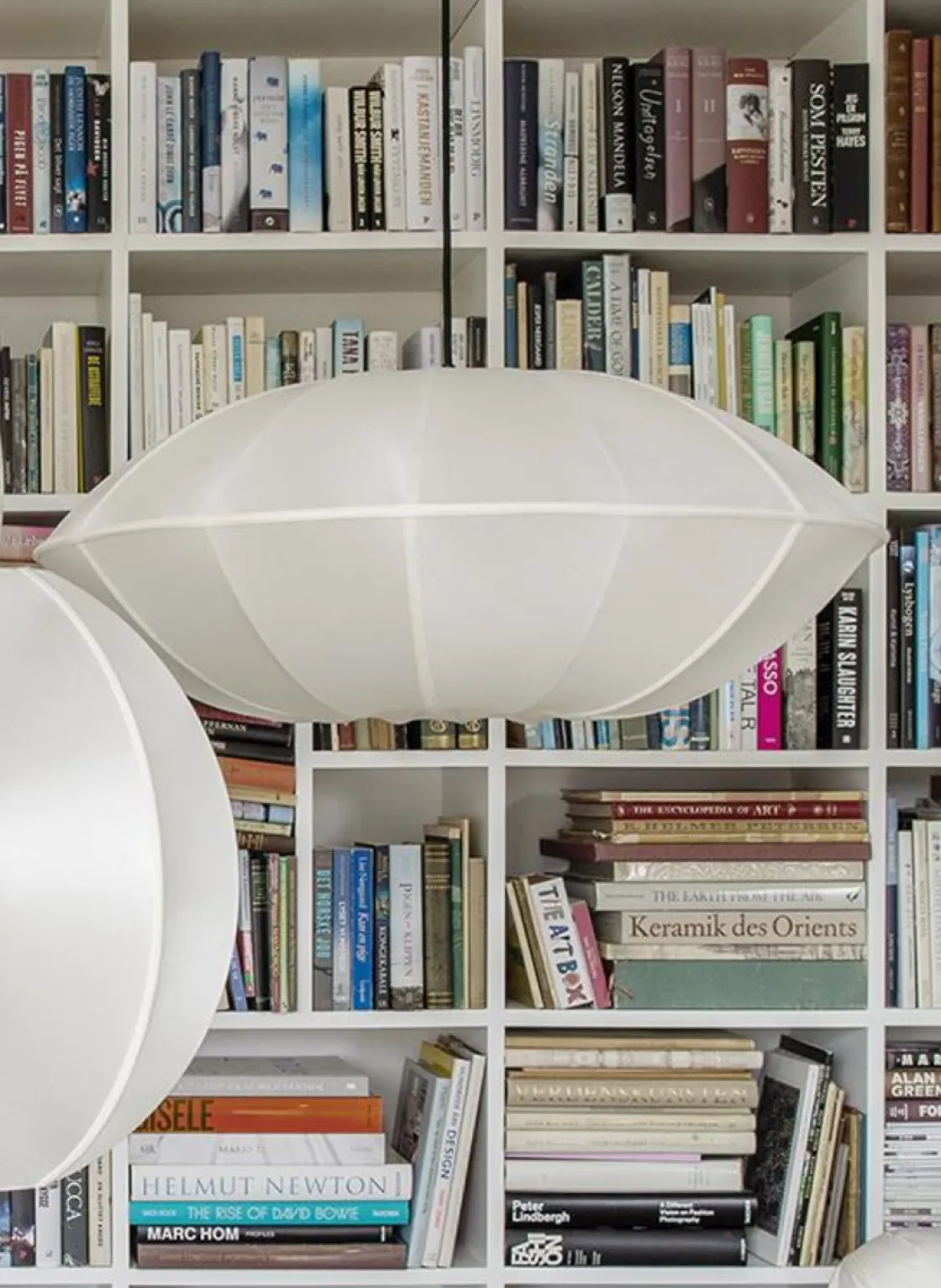 Oi Soi Oi lager noen av de vakreste taklampene vi har sett. Disse silkeskjermene kommer i forskjellige størrelser, fasonger og farger. De henger fint alene og er fine i gruppe av flere.