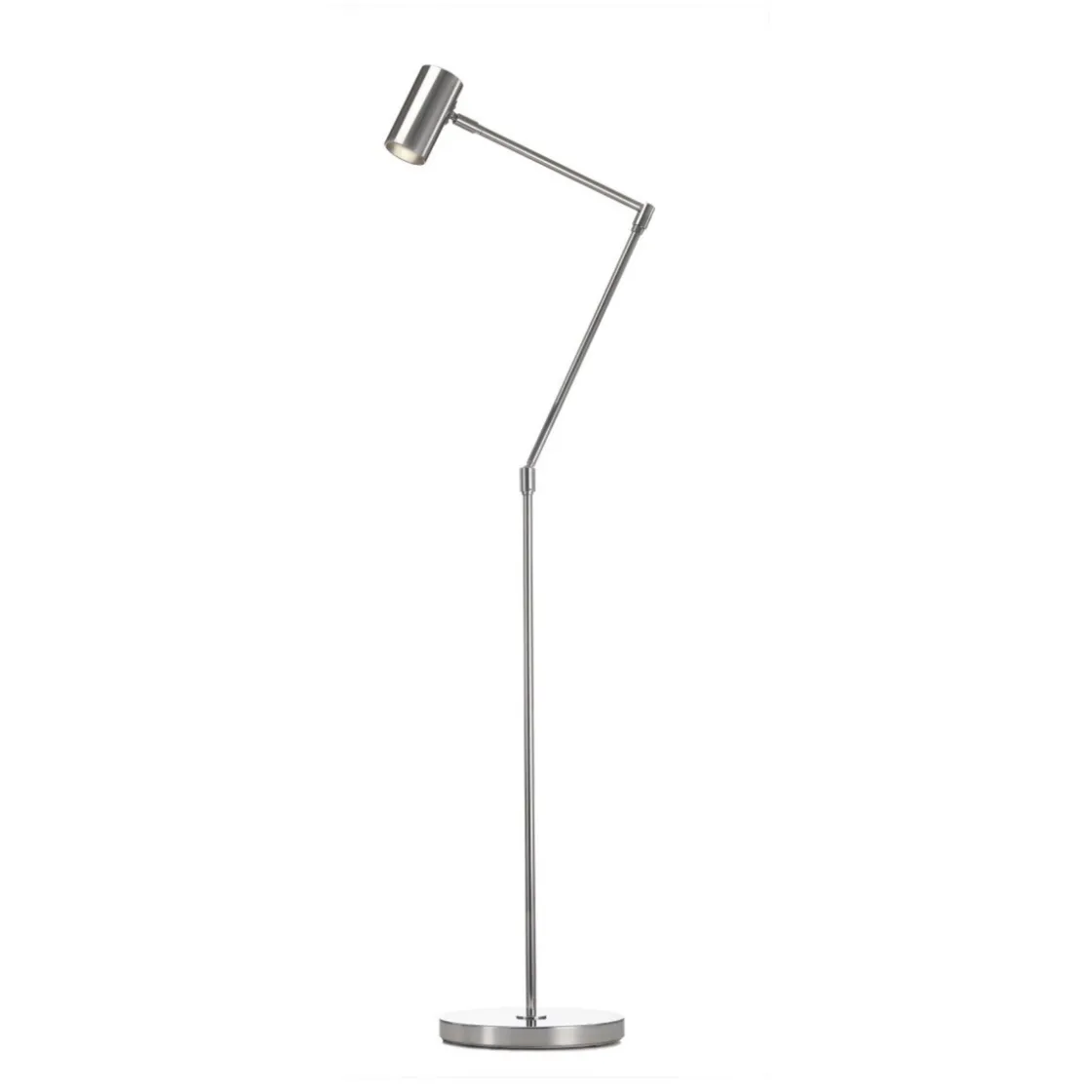Gulvlampen er svært fleksibel med justerbar ramme og roterbar samt vippbar lampeskjerm. Lampen passer inn i de fleste interiør.