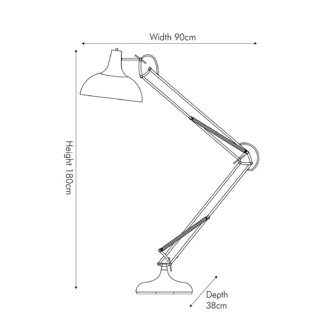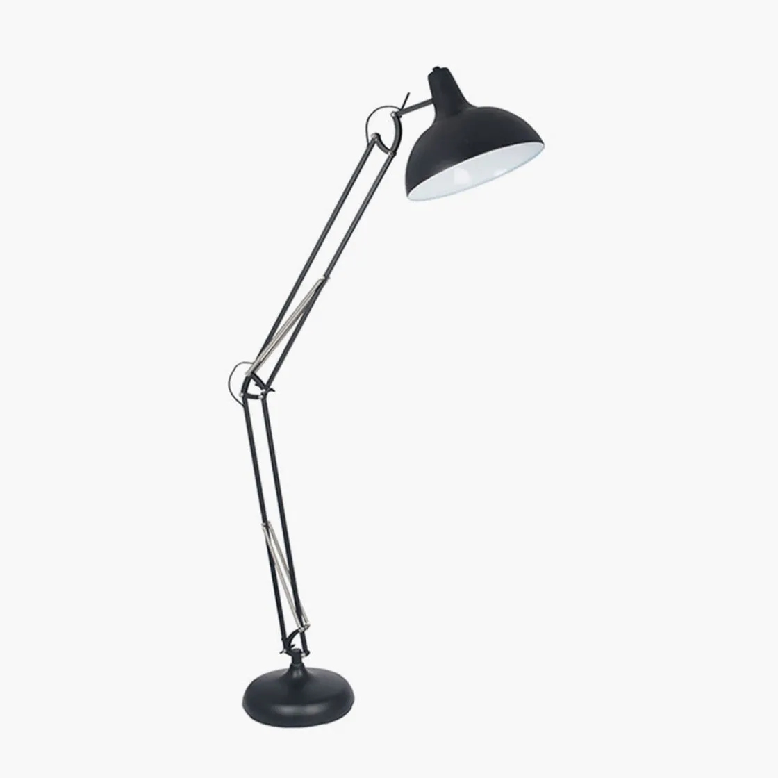 Stor flott gulvlampe i metall. Justerbar i 3 ledd.
