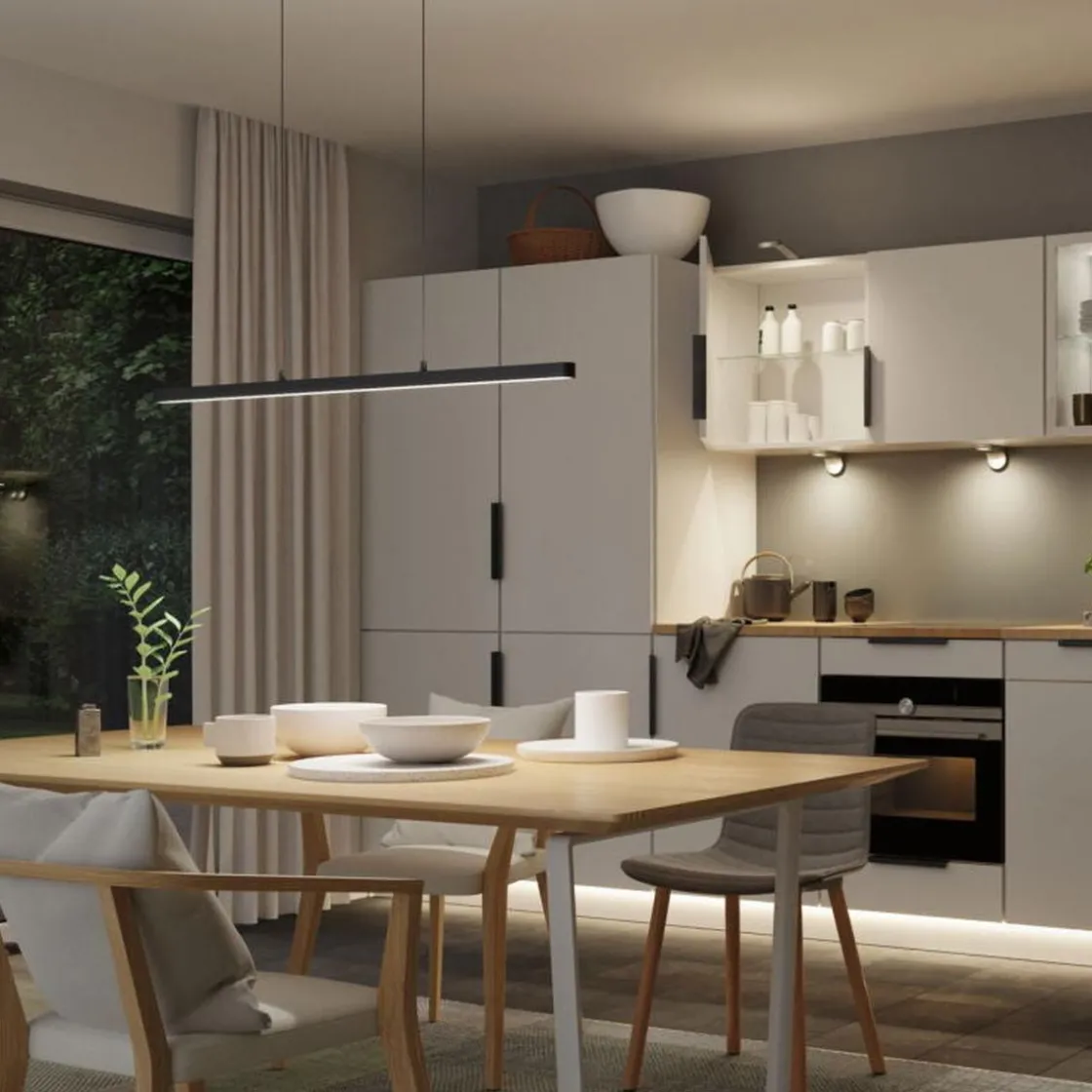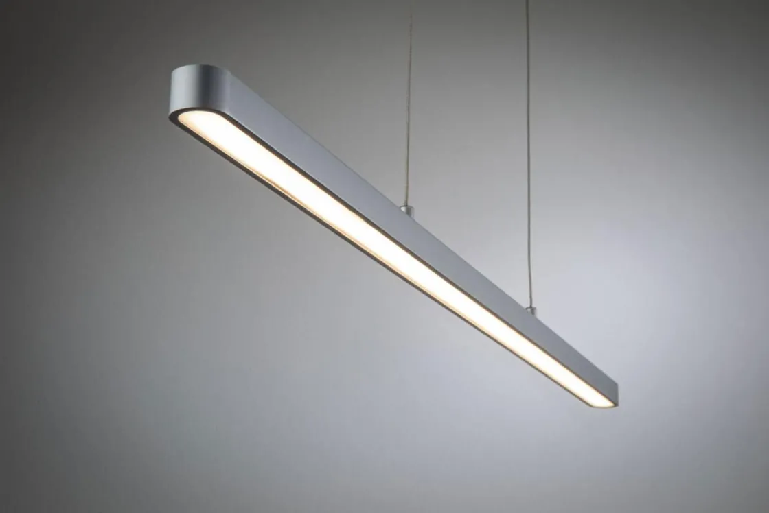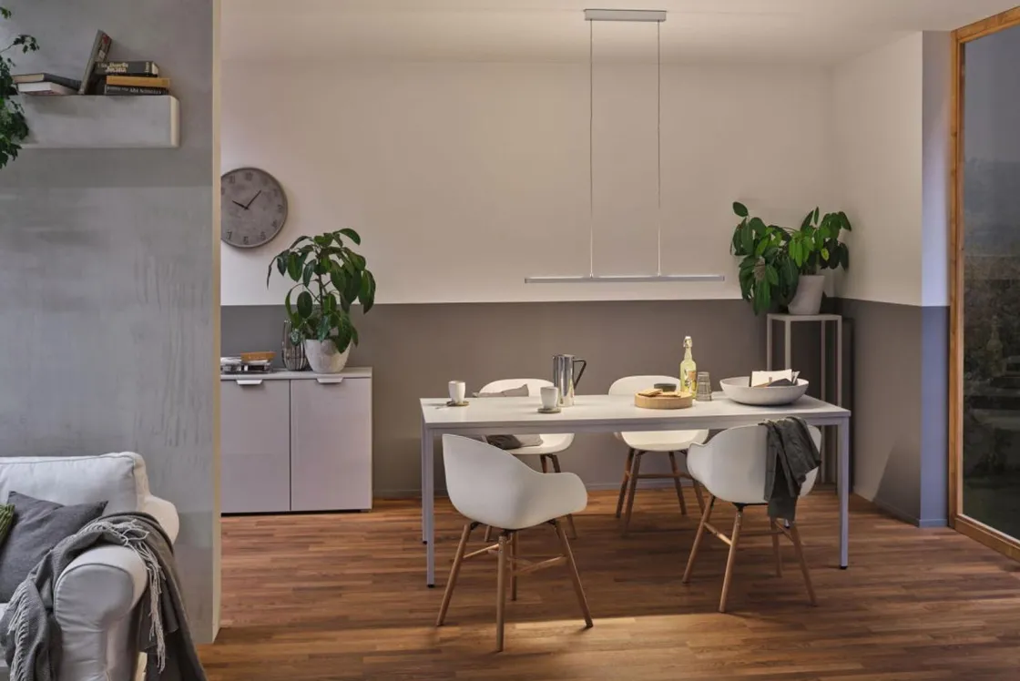 Lineær, moderne og teknisk: det er den høydejusterbare Lento pendelarmaturen. Den vil overbevise deg med sin høye lumeneffekt, og sender ut lyset både oppover og nedover. Lyset kan dimmes ved hjelp av veggdimmer