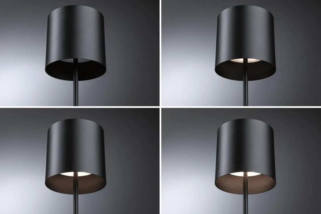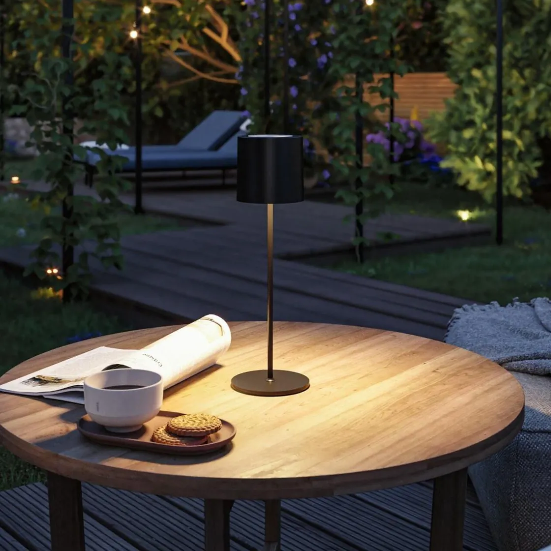 Den bærbare batteridrevne LED-bordarmaturen Tuni med IP44 i Svart matt er hendig og kompakt, takket være dimensjonene på 105 x 350 mm. Den trenger ikke strømtilkobling, slik at den kan brukes både innendørs og utendørs. Enten det er ute på camping, på terrassen eller balkongen, i en restaurant eller i stuen – den batteridrevne bordarmaturen kan brukes hvor som helst. Den reduserte, tidløse designen gjør den universell og fleksibel. Armaturen skaper en varmhvit lysstemning og har en finish av høy kvalitet og slitesterke materialer, som sikrer lang levetid. Hurtigladetiden på 5–6 timer gir en lang belysningstid på opptil 10 timer ved full lysstyrke (100 %). Den batteridrevne bordarmaturen kan lades via USB-C-tilkoblingen og har en kontinuerlig berøringsdimmefunksjon.