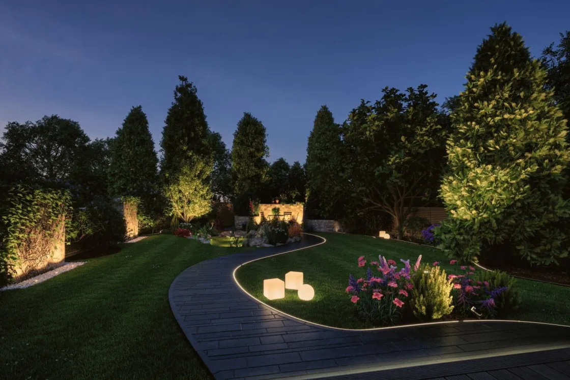 Stone Plug & Shine lysobjektet med en diameter på 35 centimeter er et dekorativt blikkfang i blomsterbed, på terrassen eller på balkongen. Med transformatorer, kontakter og tilleggsarmaturer fra Plug & Shine-serien kan du sette sammen en individuell belysningsinstallasjon for uterommene dine.