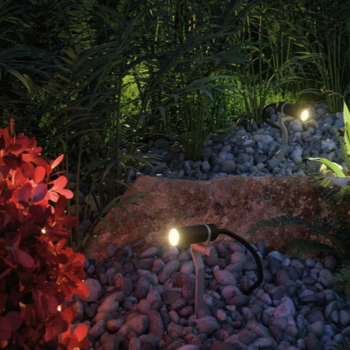 Plantini Plug & Shine jordspyd med en strålevinkel på 40 grader og varmt hvitt lys er ideell for å belyse små busker og blomster. Den kan justeres etter behov. Med transformatorer, kontakter og tilleggsarmaturer fra Plug & Shine-serien kan du sette sammen en individuell belysningsinstallasjon for uterommene dine.