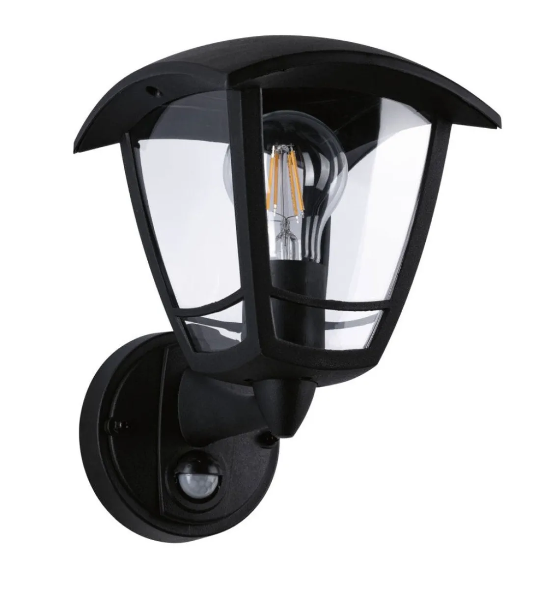 Classic buet utvendig veggarmatur har et klassisk design. Den antrasittfargede rammen og den klare glassskjermen skaper et nostalgisk utseende. En helglass glødelampe med retro-look er den ideelle lampen for denne armaturen. Lampen kan monteres på hvilken som helst yttervegg takket være den sprutsikre designen. Lyset slås automatisk på av den integrerte bevegelsessensoren, så snart noen nærmer seg.