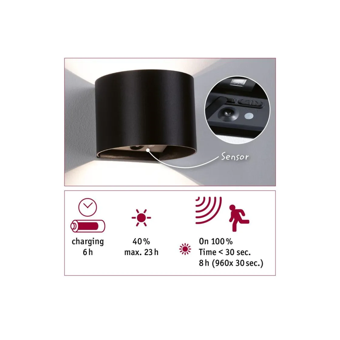 Paulmann Utelamper Med Opp/Ned Lys|Baderomsbelysning Vegg<Nyara rund oppladbar vegglampe opp/ned lys med sensor