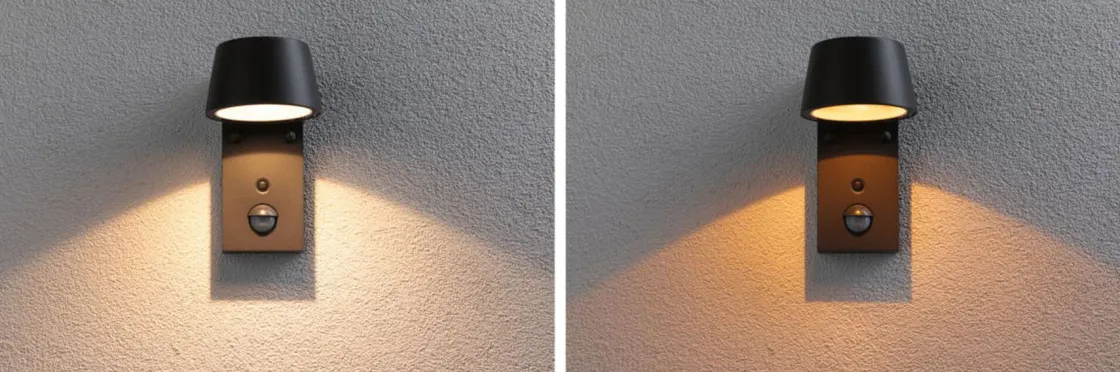 Den varmhvite LED utendørs vegglampen Capea med en effekt på 6W skaper attraktive lyseffekter og øker sikkerheten ved å lyse opp uteområdet. Den bringer lys til ytterveggene og lyser jevnt opp inngangspartiet. I grunninnstillingen lyser vegglampen utendørs med 20 % lysstyrke og 2200 Kelvin. Så snart noen nærmer seg, slås utelyset til 100 % lysstyrke og 3000 Kelvin av den innebygde bevegelsesdetektoren. Etter ca. 30 sekunder bytter den tilbake til den lagrede lysfargen og lysstyrken. 2200 Kelvin er utenfor det synlige området for de fleste insekter, så de tiltrekkes ikke av den ekstra lyskilden og armaturen er derfor spesielt insektvennlig.