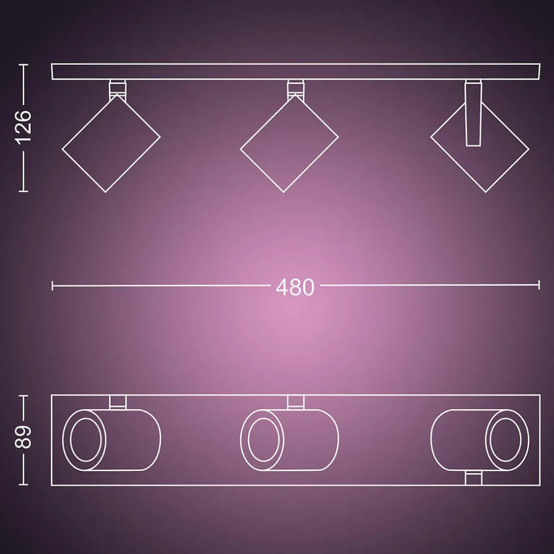 Lysmengde: 350 Lumen pr lyskilde. Totalt effekt: 1050 lumen