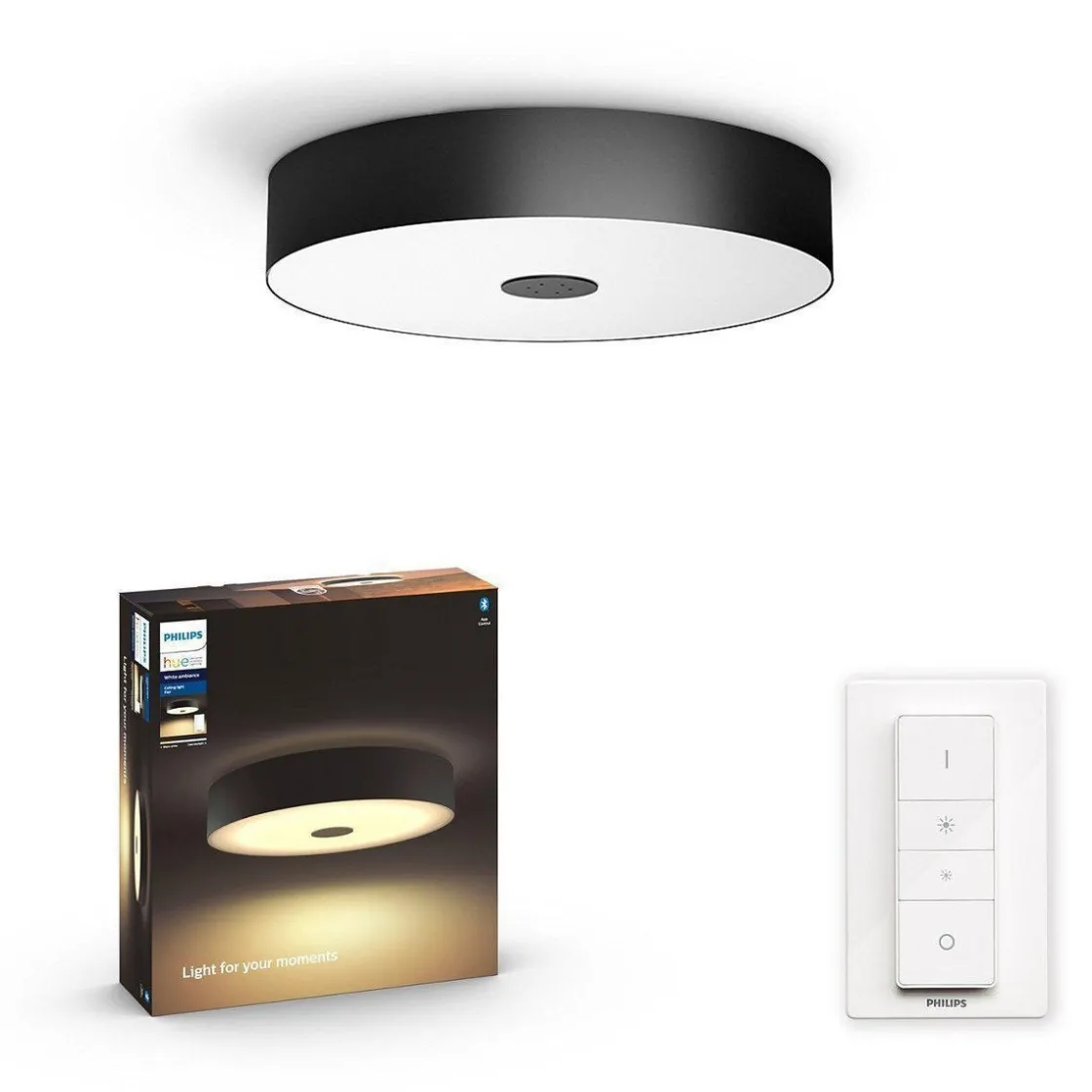 Med unik belysning som lyser både opp og ned, har Philips Hue White Ambiance Fair White-taklampen varmt til kjølig hvitt lys og innebygde lysinnstillinger. Få øyeblikkelig kontroll med den medfølgende Hue-dimmeren switch enller Bluetooth. Koble til en Hue Bridge for flere smartbelysningsfunksjoner.