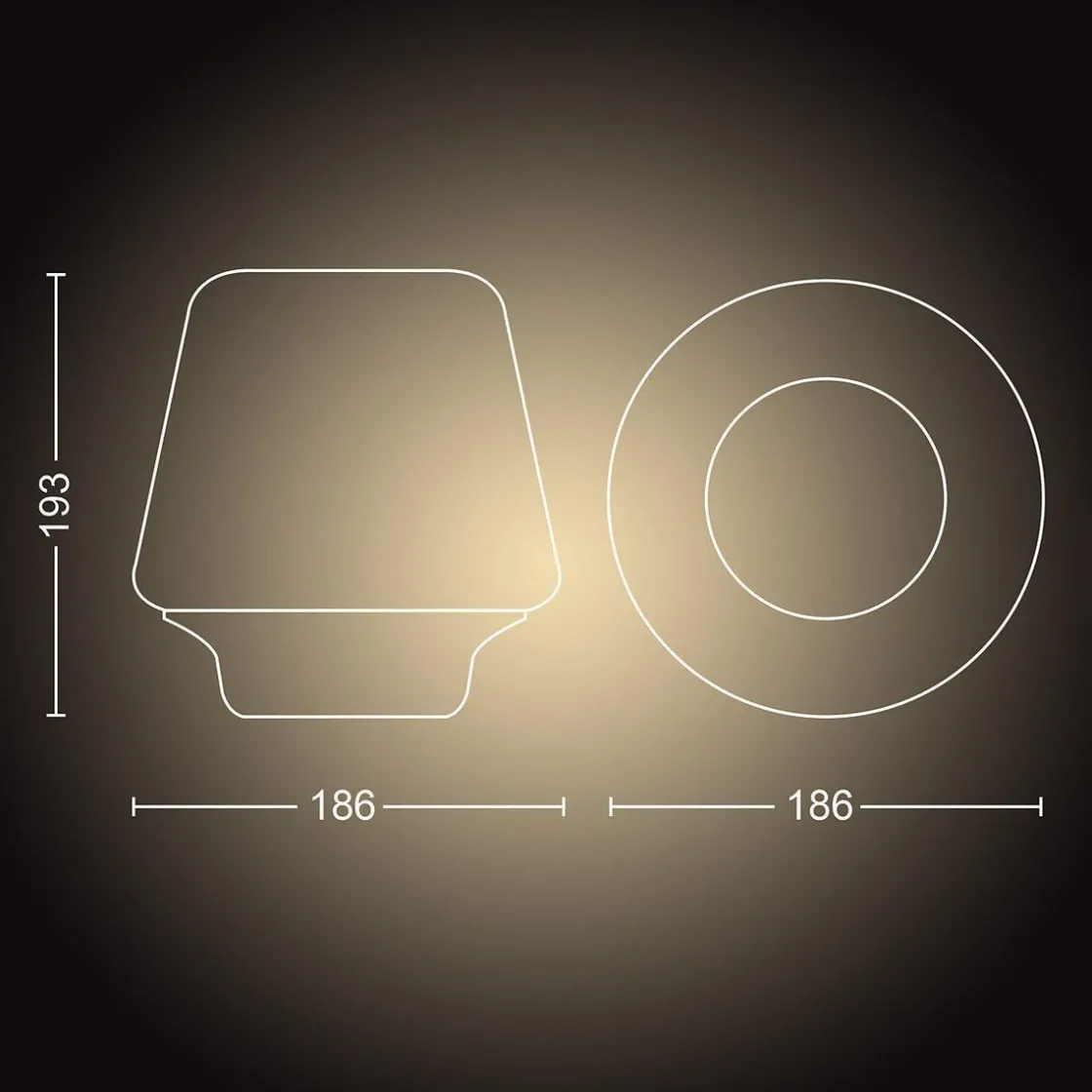 Philips Hue White ambiance Wellness bordlampens varmt til kjølig lys lar deg lese, slappe av, konsentrere deg og få energi i det perfekte lyset. Få øyeblikkelig kontroll med den medfølgende Hue-dimmeren switch eller Bluetooth eller legg til en Hue Bridge for å låse opp alle smartbelysningsfunksjonene