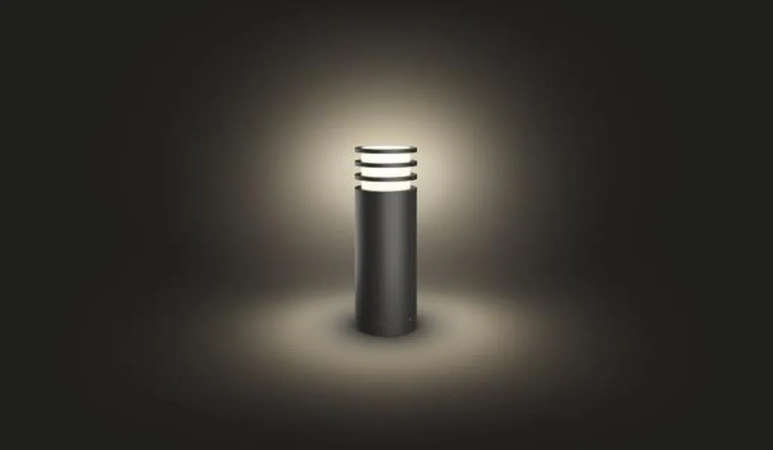 Lucca serien består av vegglampe og pullert i to størrelser. Nå kan du styre utendørsbelysningen din via din mobiltelefon eller du kan sette på automatisk timer som gjør at lyset skrues av og på ved gitte klokkeslett. Kanskje du vil at lysene skal være påskrudd når du kommer hjem på kvelden, eller at de skal gjenspeile at noen er hjemme – mulighetene er endeløse. Det lekre, stilrene designet kombinert med Philips Hue White teknologien gjør dette til en lampe du garantert kommer til å like.