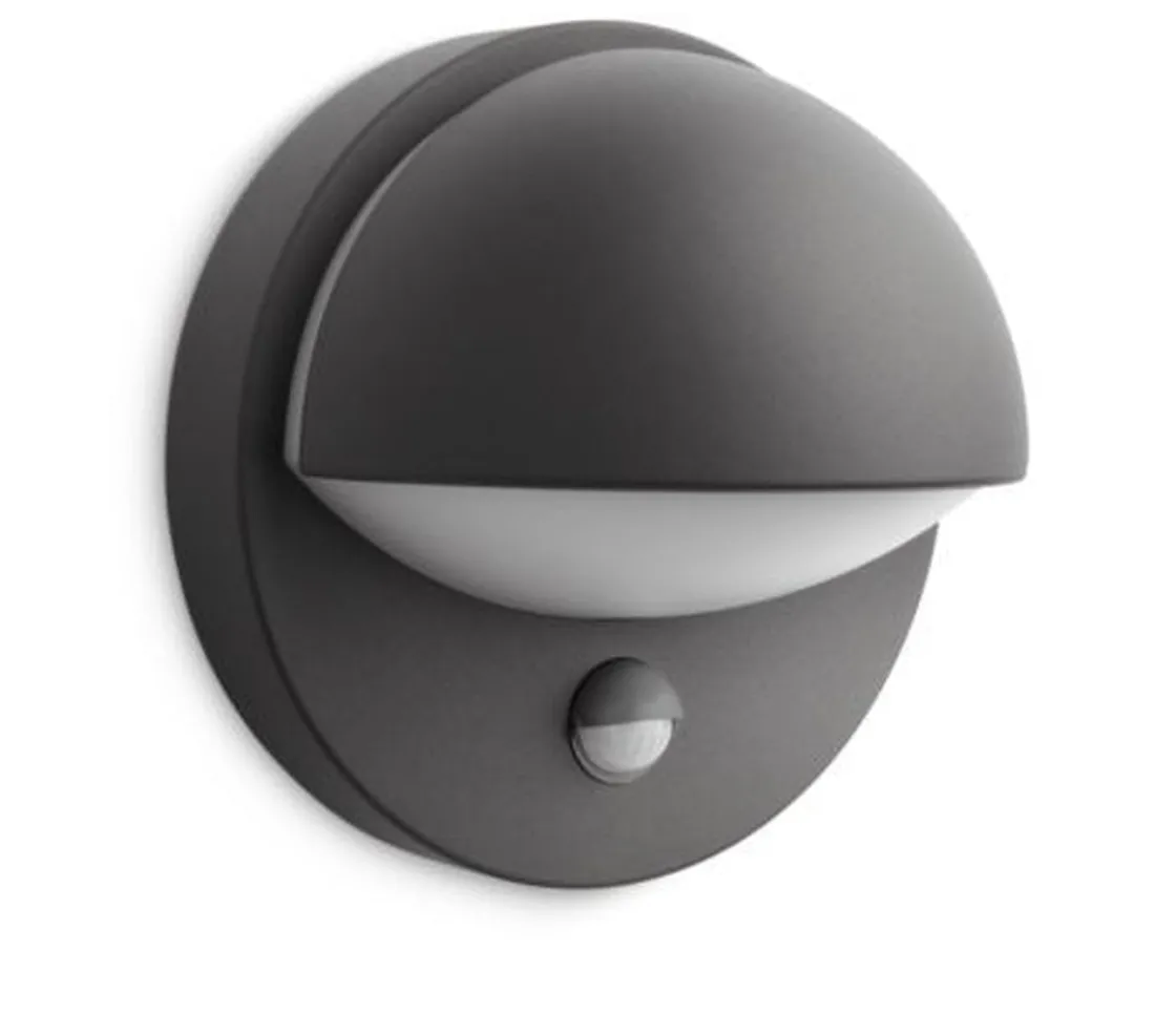 Gi hagen en moderne stil. Denne Philips myGarden-vegglampen i antrasitt med bevegelsessensor er iøynefallende med sin stilige form. Den kaster et energibesparende og varmt hvitt lys og gir deg en varm velkomst hver gang du kommer hjem
