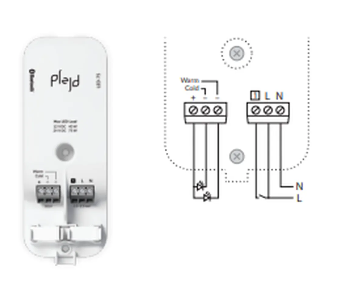 LED-driver 75 W for bruk til 12/24 V DC tunable white eller enfargede LED-striper for inntil 75 W belastning. LED-75 har en kontrollinngang, i tillegg så kan den styres trådløst via app eller andre produkter fra Plejd. Den kan også styres automatisk med innebygde tidsfunksjoner som astrour og ukesur.