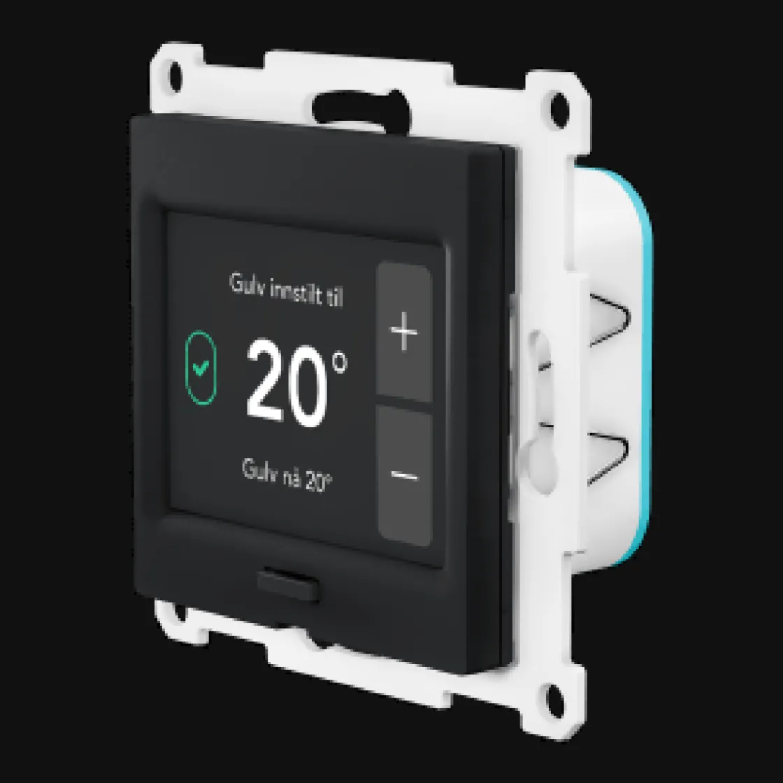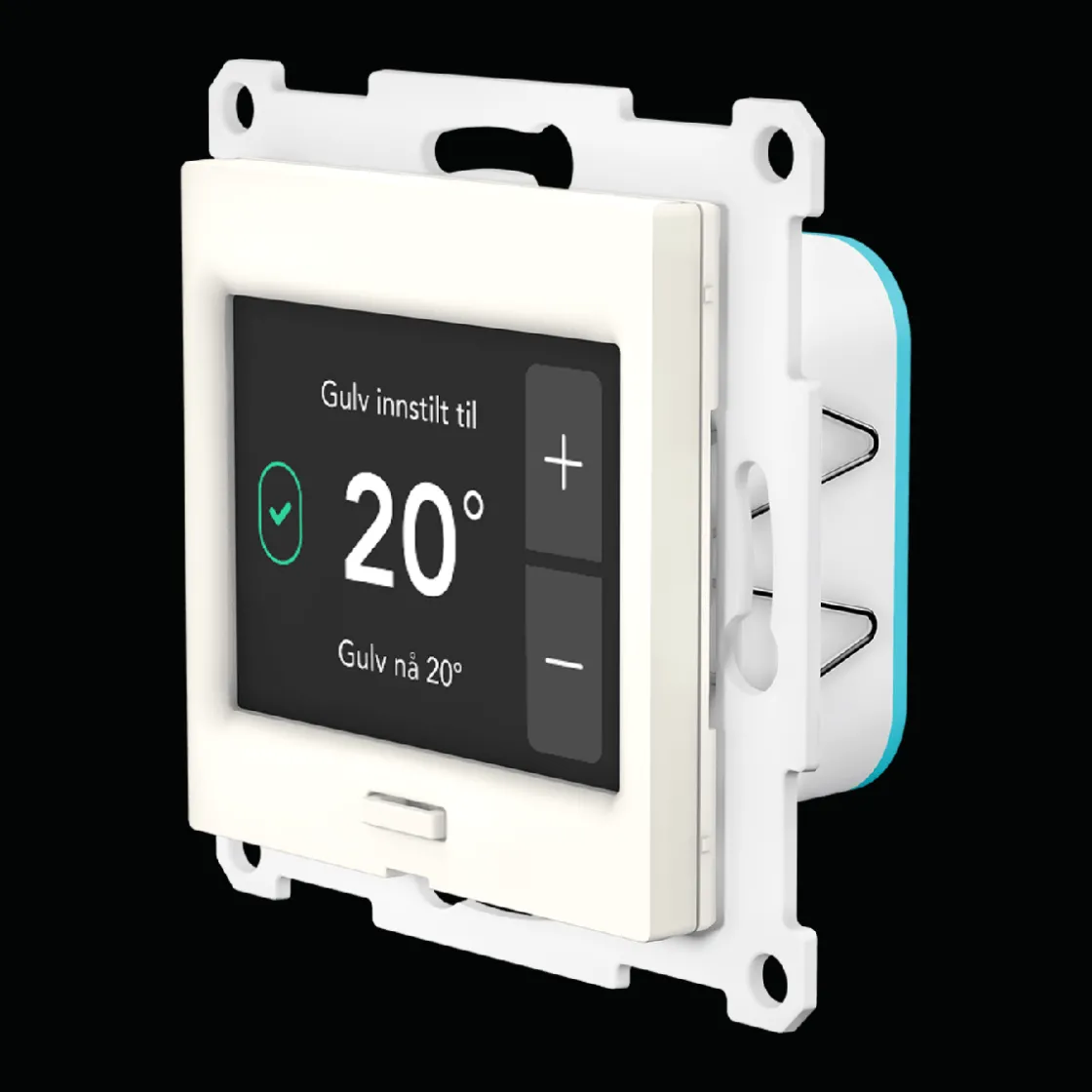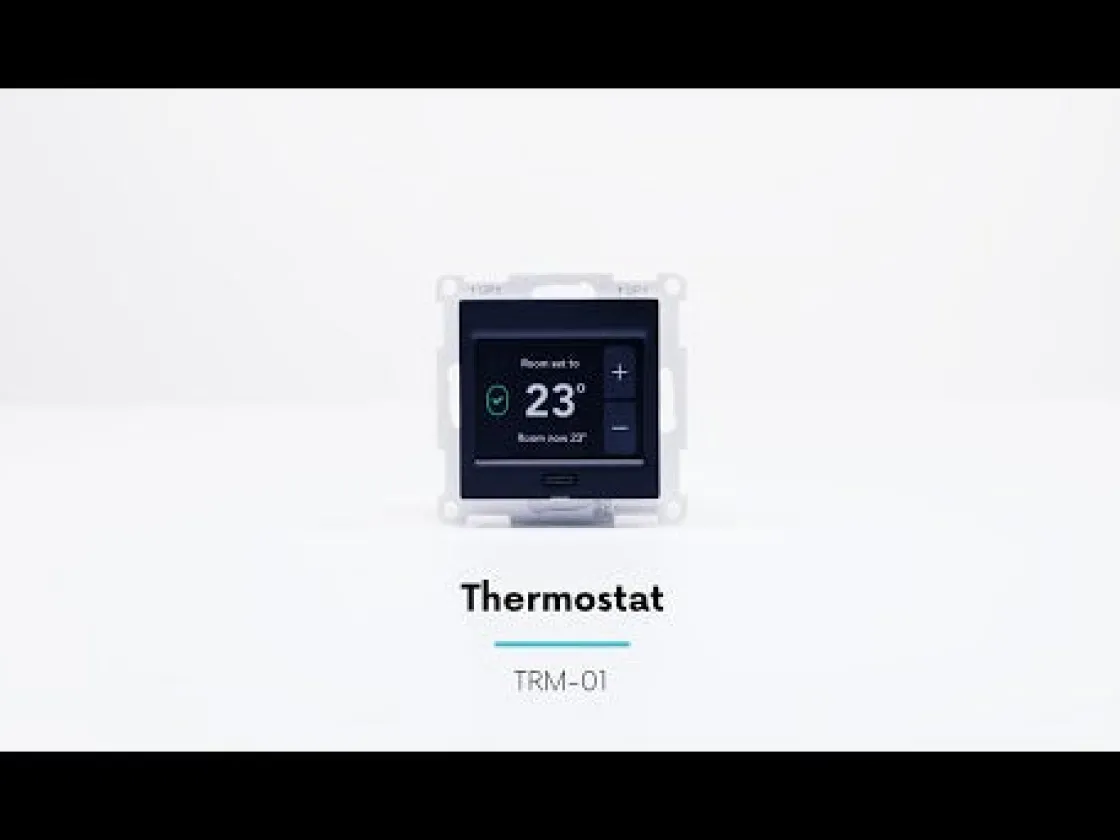 TRM-01 er en termostat for elektrisk gulvvarme med en berøringsskjerm for å styre og vise temperatur og varmemodus. Den kan tåle en last på inntil 16A, har innebygd romføler og medfølgende gulvføler. Den kan også brukes med eksisterende gulvføler eller som regulator (PWM). TRM-01 kan automatiseres for energisparing, gjennom f.eks. dag- og nattesenking. Med en Gateway (GWY-01, ikke inkludert) kan produktet fjernstyres.