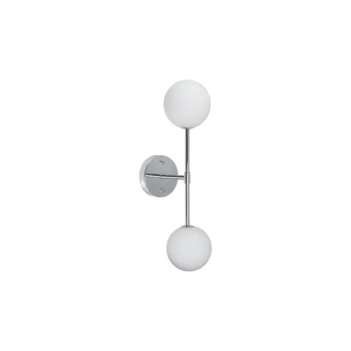 Vegglampe i minimalistisk design med opalglass og metallramme i krom. Den er fuktsikker i IP23-klassifisering og passer godt i baderomsmiljøer.