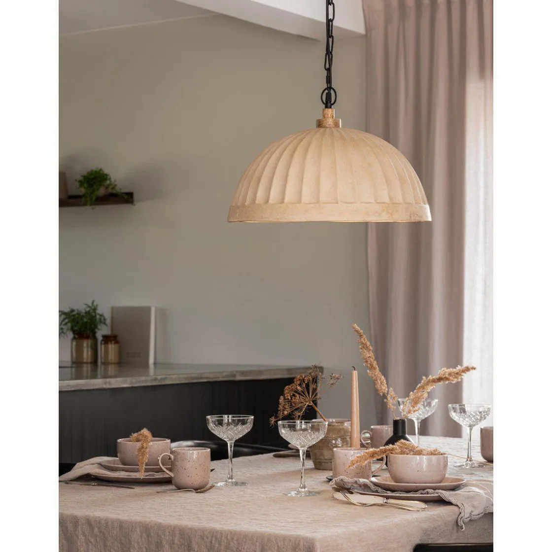 Lampen har en klassisk form med brede riller og en glatt kant nederst.
