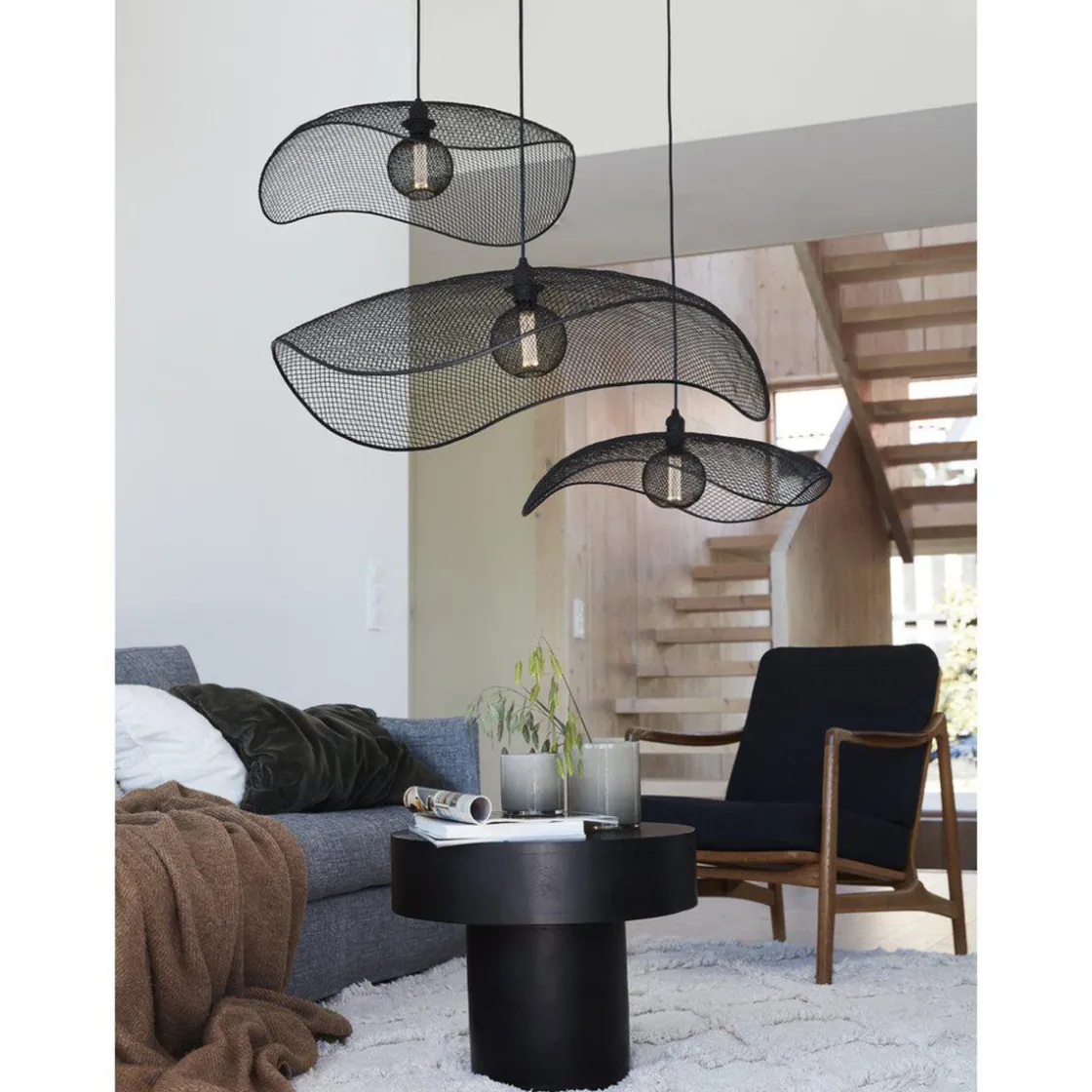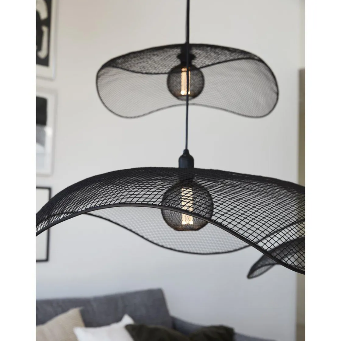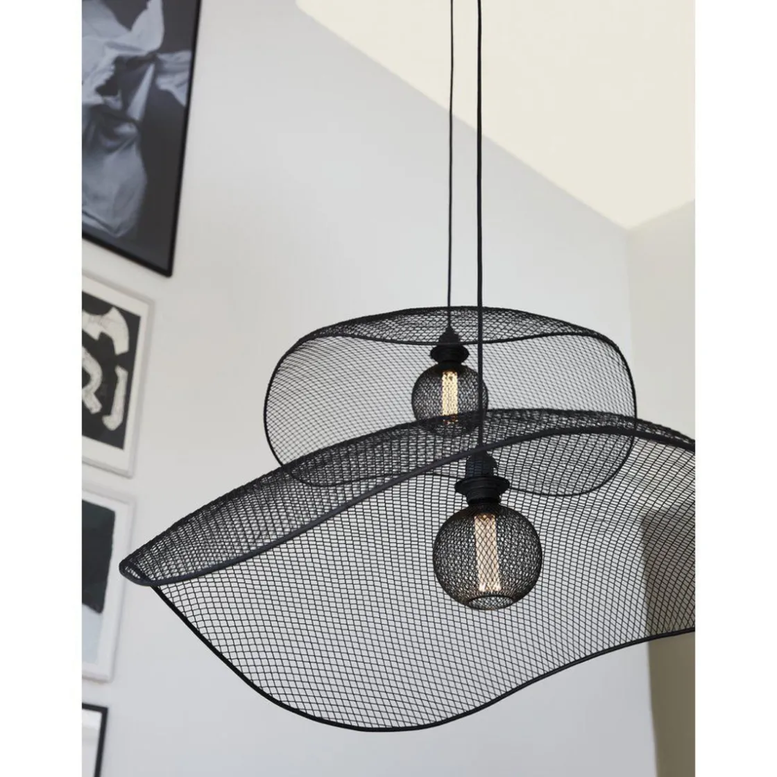Takpendelen Vivi er en bredskygget og bølgeformet takpendel laget av svart metallgitter.