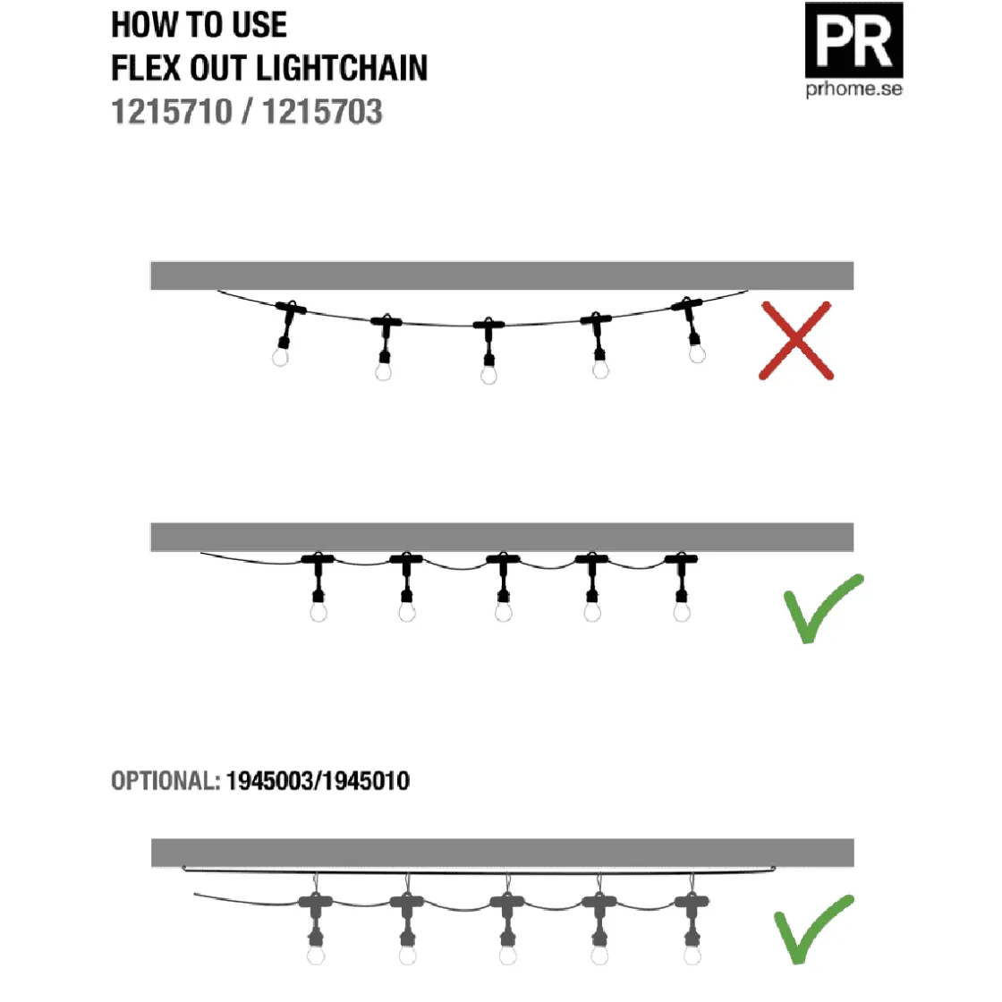 - Fra stikkontakt til første lyskilde: 2,5 m