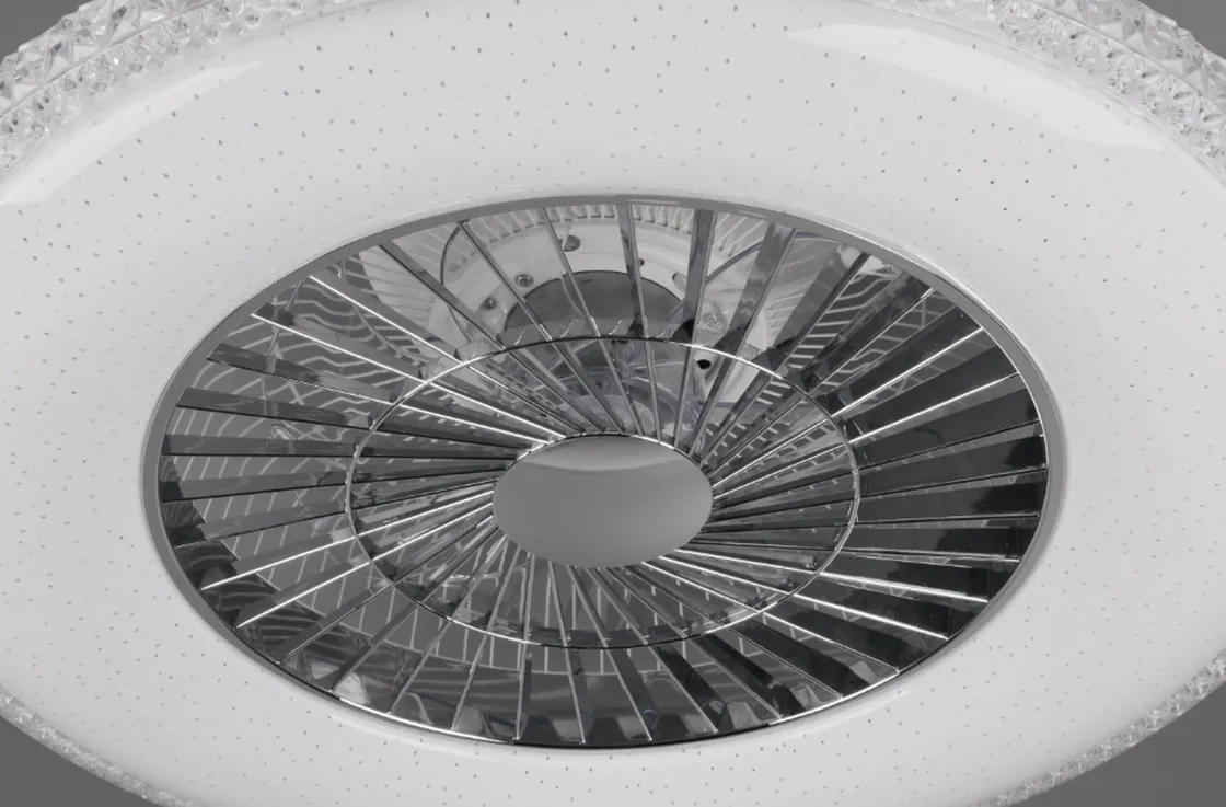 Halmstad er en stilren vifte med lys og fjernkontroll. Det er mulig å skifte fargetemperaturen i lyset mellom 3000 kelvin til 6000 kelvin, da bestemmer du selv om du ønsker varmhvit eller kjøligere fargetemperatur