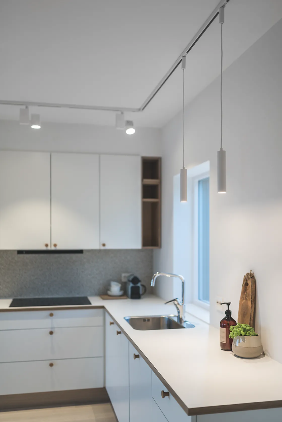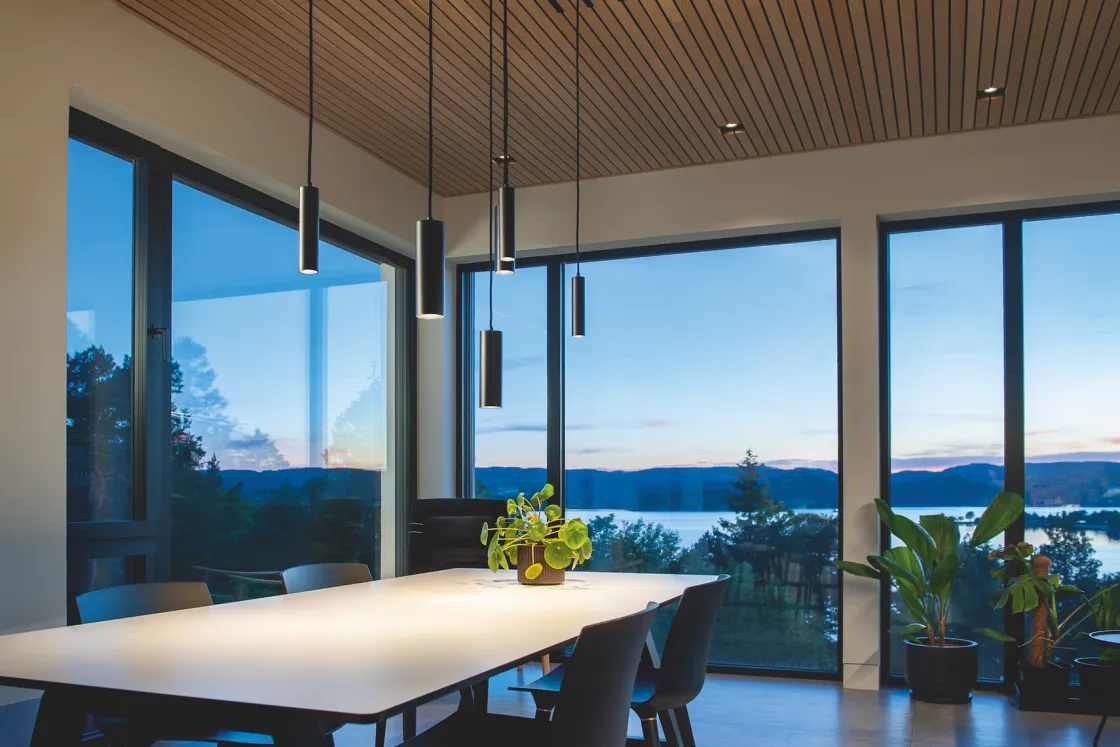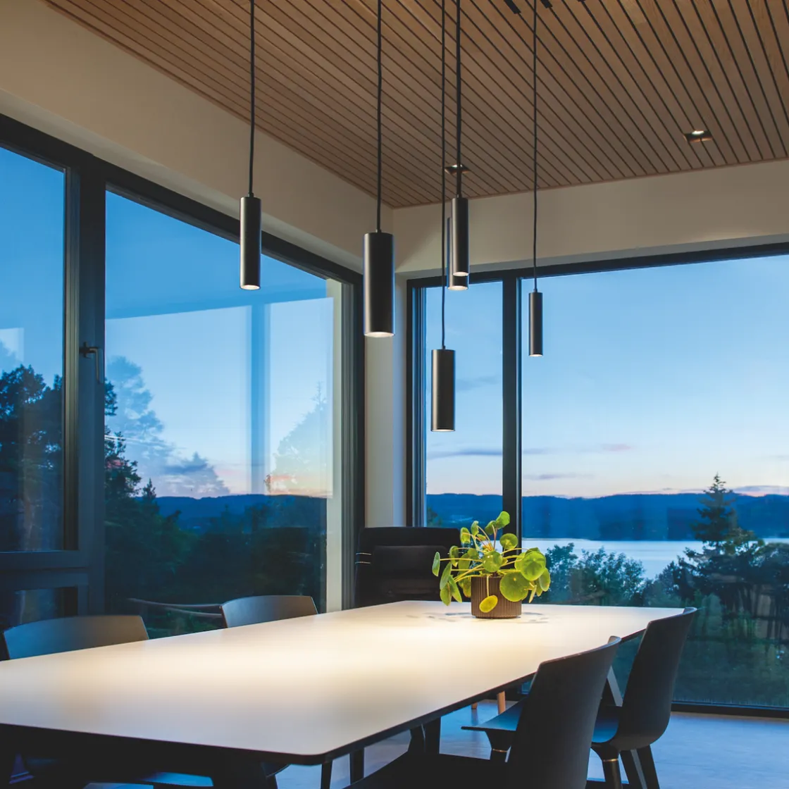 Minimalistisk, slank pendel for bruk i Zip-skinnesystem. Perfekt over kjøkkenbenk, spisebord eller i vinduet. Produsert i pulverlakkert, trykkstøpt aluminium og finnes i sort eller hvit finish. Den tilbaketrukne lyskilden gir minimal blending, og kan dimmes med ekstern dimmer.