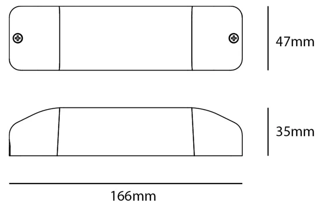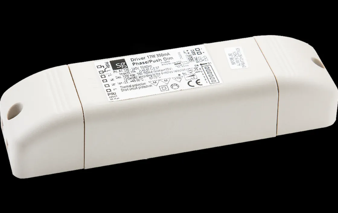 17W driver @ 350mA. Driveren er dimbar med faseavsnitt og impulsbryter. Max 17W belastning.
