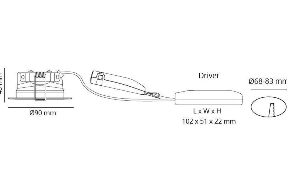Spottene er utstyrt med dim-to-warm-funksjon som gjør at lyset får en varmere og lunere farge når det dimmes ned.