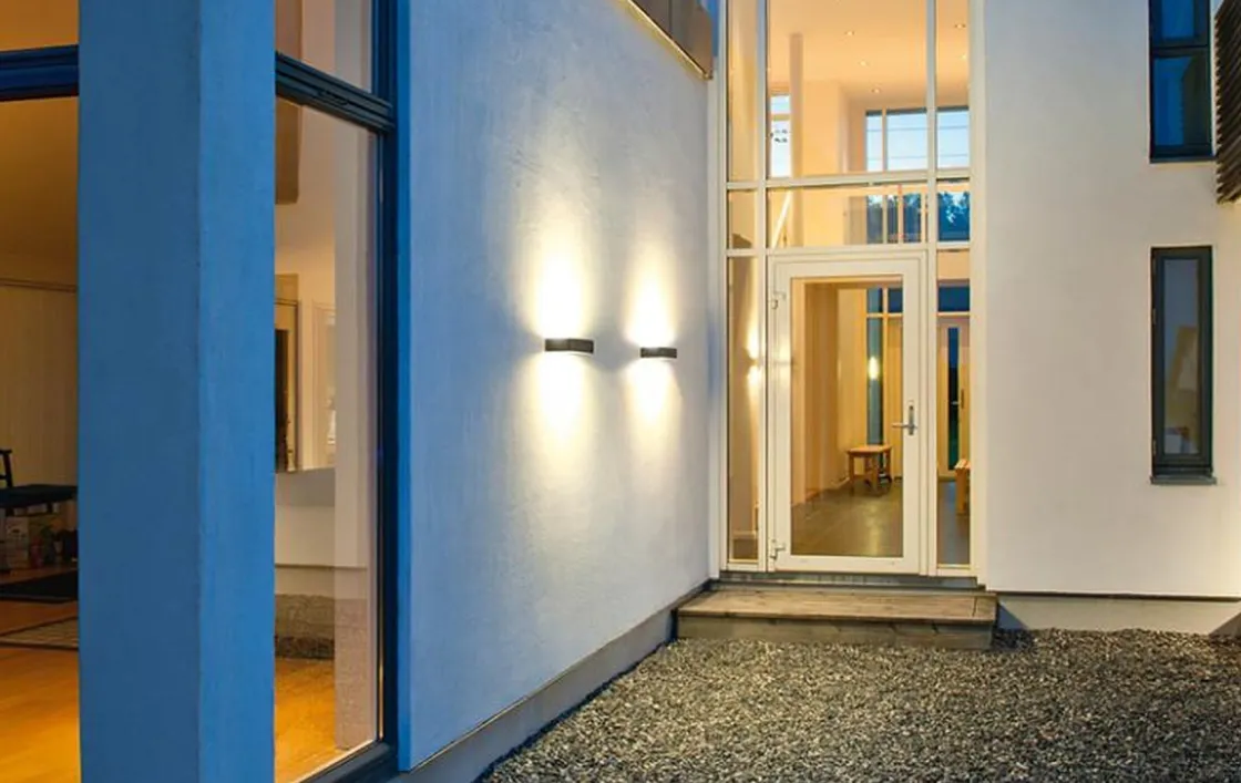 Slank veggarmatur som passer like godt innendørs som utendørs. Kan monteres både horisontalt og vertikalt. Finnes som opp-/nedlys eller kun nedlys (direct). Armaturen har integrert LED-lyskilde, og er dimbar med faseavsnittdimmer.