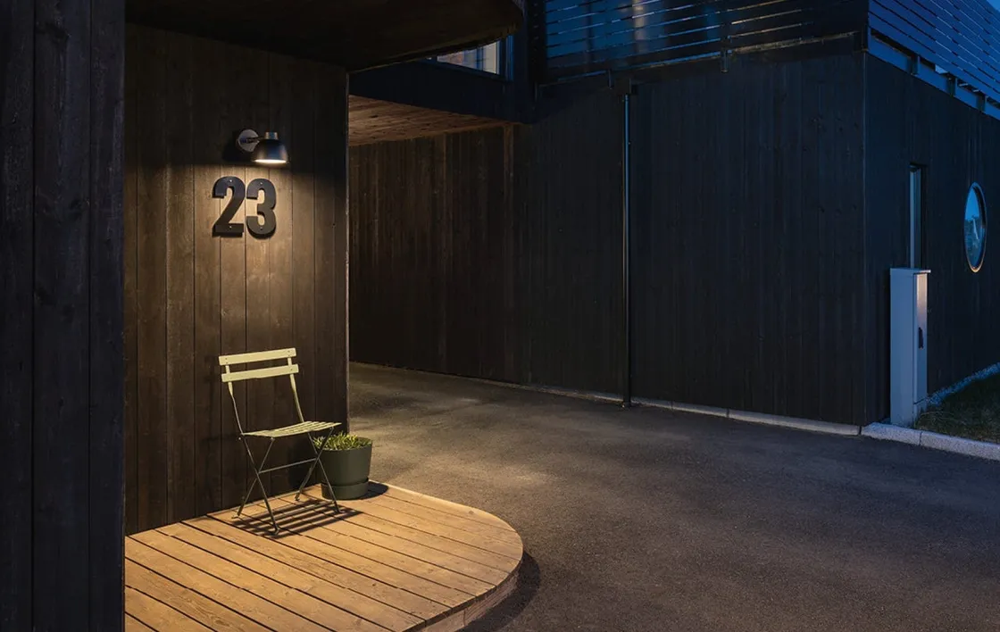 Klassisk utelampe i stilrent design som passer både i bymiljø og i mer landlige omgivelser. Med solid pulverlakkert aluminium og herdet glassfront er den egnet både for privat og offentlig bruk. Bak glassfronten har man tilgang til brytere for 3000K / 4000K og for 2 lumennivåer, dvs. 4 kombinasjoner i ett produkt. Som standard er den stilt inn på 3000K og høyeste lumennivå. Enkel montering med veggbrakett og hurtigkobling. Flere kabelinnganger bak og svekninger for utenpåliggende kabel. Ideell for Breeam prosjekter; med høyt lysutbytte oppfyller den Ene 03 for alle kategorier og den er godt egnet for å hindre lysforurensning i henhold til Pol 04.