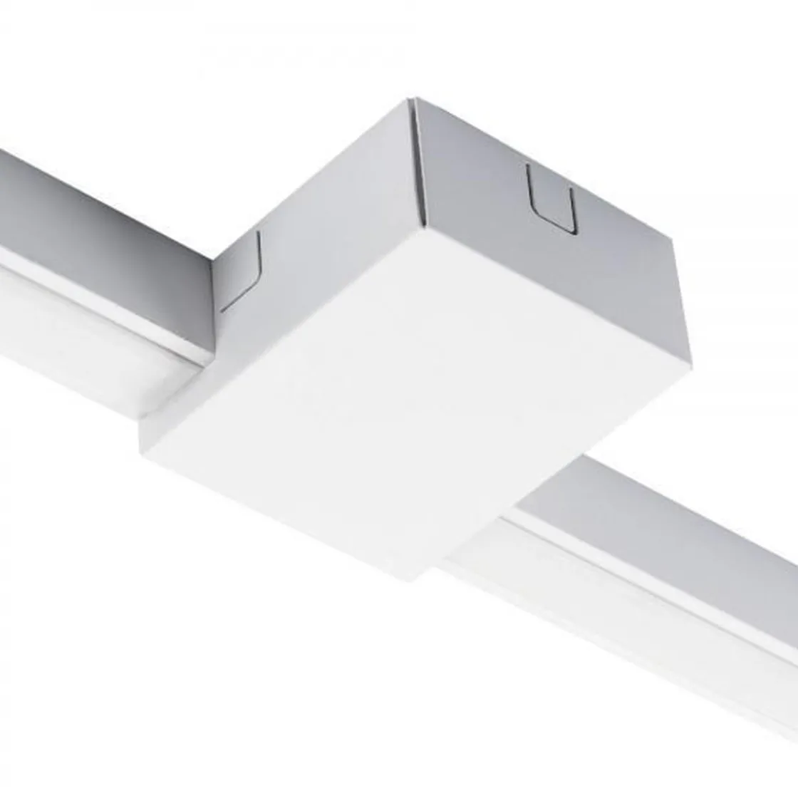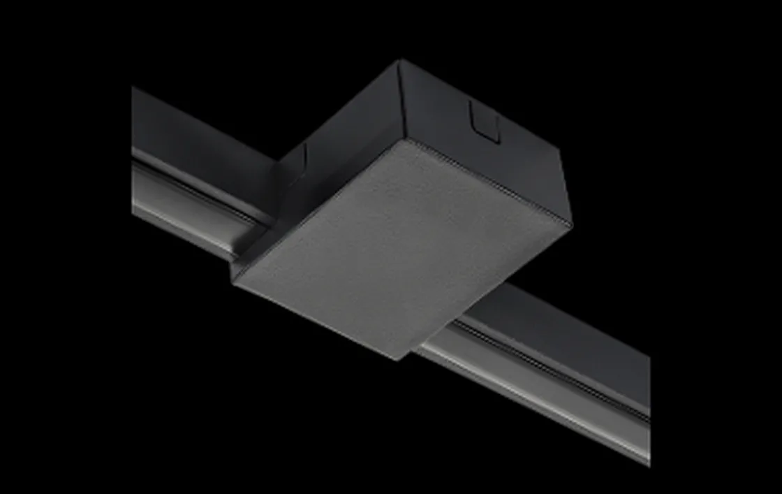 Flyttbar tilkobling som kan benyttes til Zip-skinnesystemet for å få strøm til skinnesystemet. Kabel kan komme som en åpen forlagt kabel eller fra et rør ovenfra.