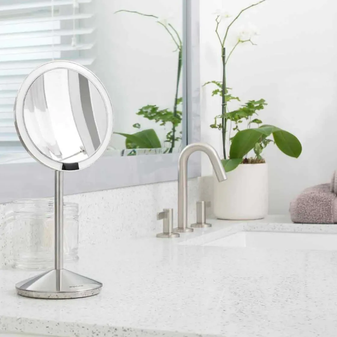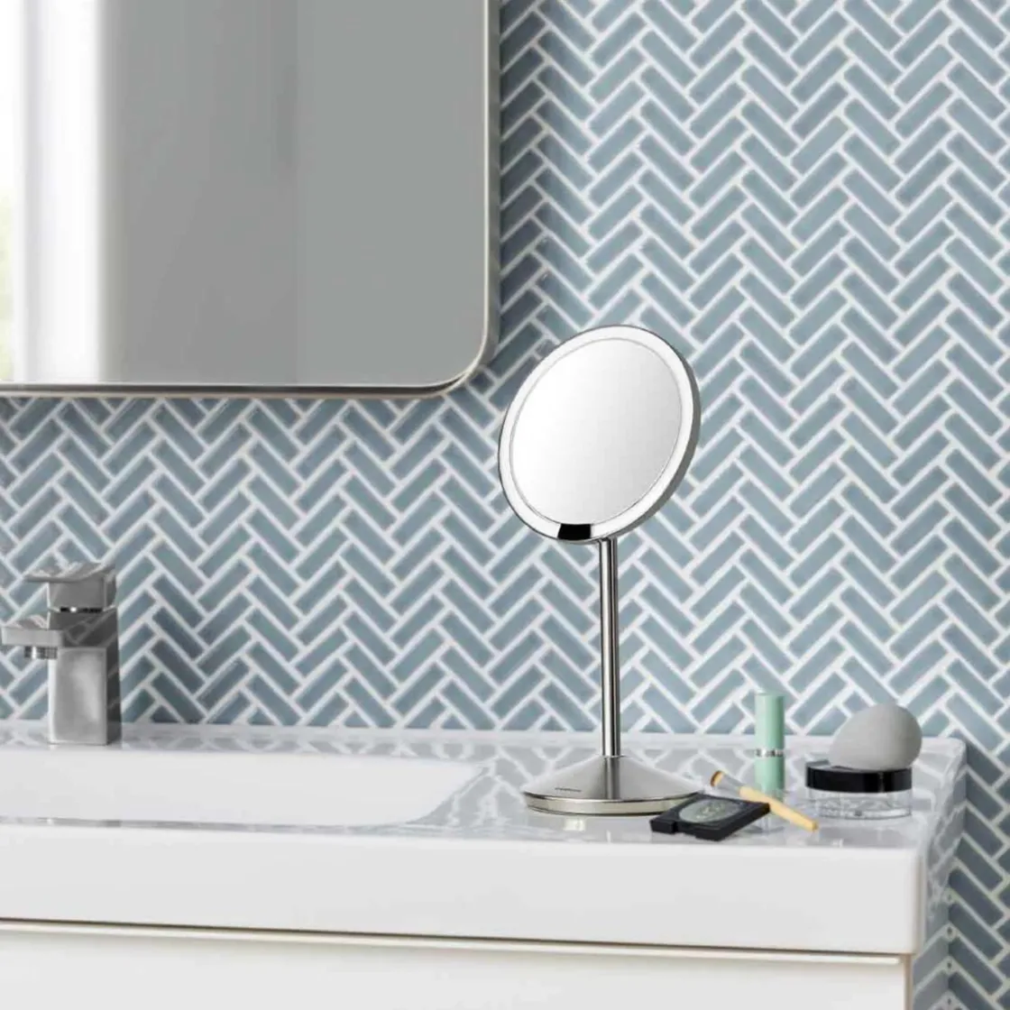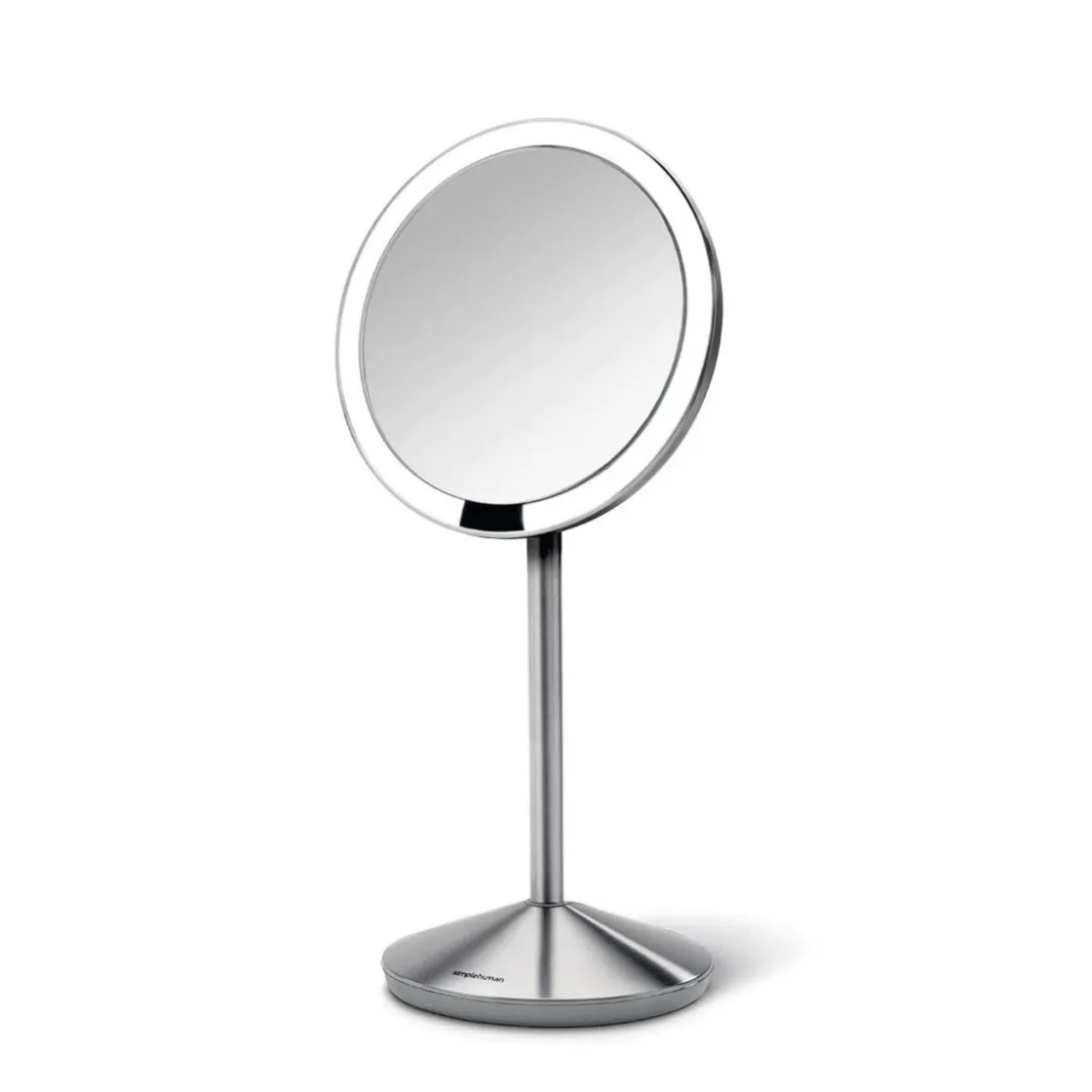 Simplehumans Sensorspeil Mini lyser automatisk opp når ditt ansikt nærmer seg speilet. Med en fargegjengivelsesindeks (CRI) på 90 klarer speilets «tru-lux» lys system å gjenspeile hele fargespekteret til naturlig sollys, slik at resultatet når du sminker deg blir fargekorrekt. I motsetning til tradisjonelle sminkespeil med vanlige lyspærer, vil Simplehumans langvarende LED-lys ikke slukne eller avta i styrke selv etter mange år. Speilet kan brettes ned og oppbevares enkelt i det medfølgende reiseetuiet. Du lader speilet enkelt med den medfølgende USB-ledningen, og en ladning varer opp til 5 uker.