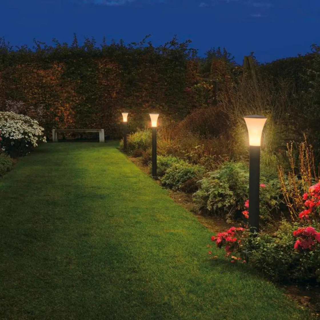 Lyset fra Pullert ALPA CONE 100 i aluminium kommer fra det opalhvite armaturhodet i PC. Med kapslingsklasse IP55 er den egnet til utendørs bruk. Til de forskjellige modellene i ulike farger og størrelser finnes det ekstrautstyr som jordspyd og koblingsboks for sikker elektrisk tilkobling i den runde armaturfoten. Tilkoblingen krever 230 V nettspenning.
